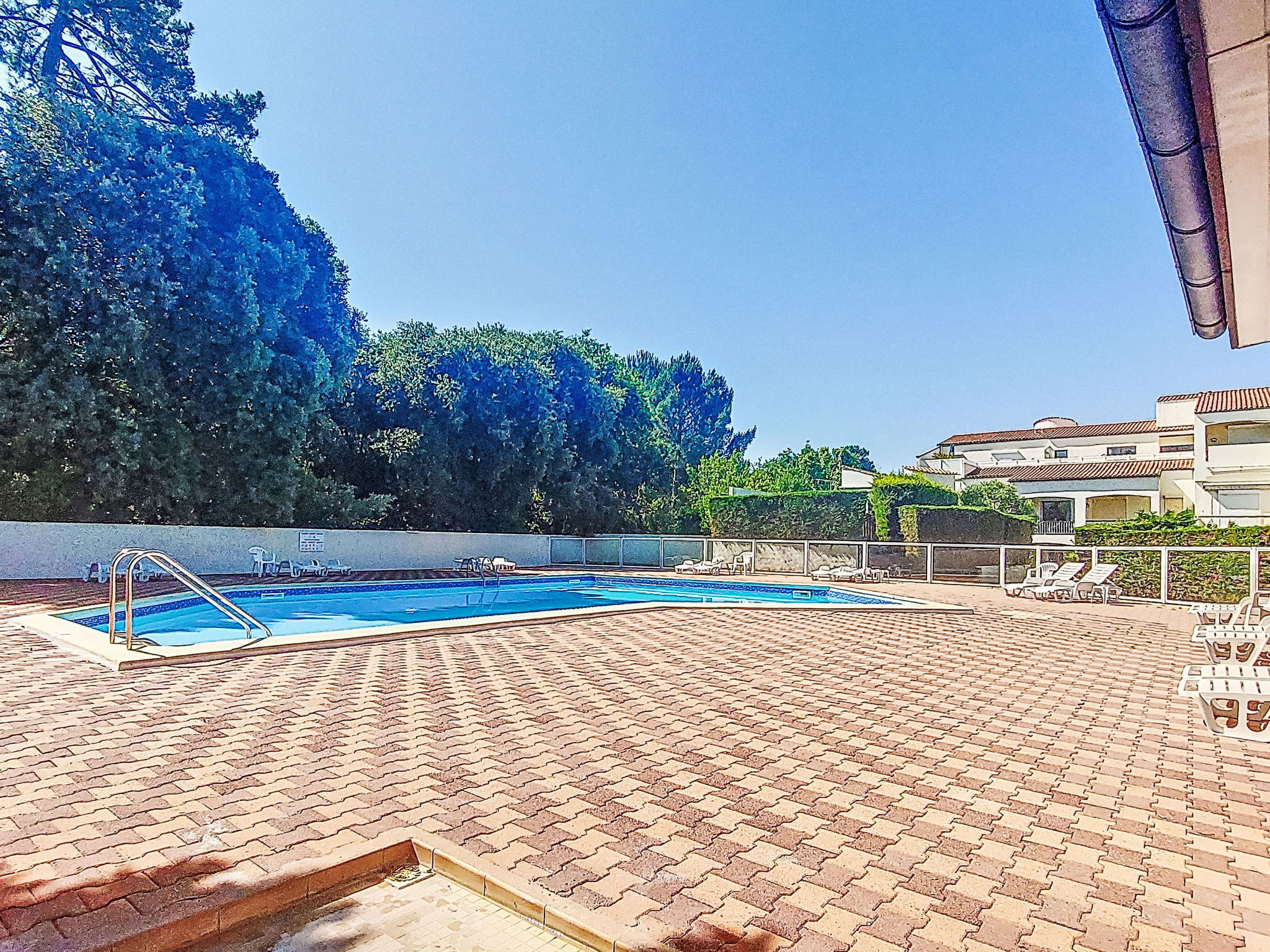 Residence "l'Oasis", 4 storeys, surrounded by trees. In the resort 5 km from the centre of Dolus d'Oleron, 800 m from the edge of the forest, 1.2 km from the sea, 1.2 km from the beach. For shared use: property (fenced), plants and trees, swimming pool angular fenced (6 x 12 m, 72 m2, depth 185 cm, seasonal availability: 01.Jun. - 15.Sep.). Outdoor shower, tennis (2 x hard court), boccia. In the complex: parking. Shop 5 km, grocery 5 km, supermarket 4 km, shopping centre 4 km, restaurant 4 km, bar 4 km, bakery 4 km, bus stop"Les Chasseries" (Dolus)" 4 km, railway station "Rochefort sur mer" 40 km, sandy beach "plage de vert-bois" 1.2 km. Sports harbour 7 km, golf course (9 hole) 9 km, surf school 1.2 km, sailing school 4 km. Nearby attractions: Centre aquatique iléo 5 km, phare de Chassiron 25 km, port de la cotinière 7 km, corderie royale rochefort 39 km, la rochelle 76 km. Please note: car recommended.