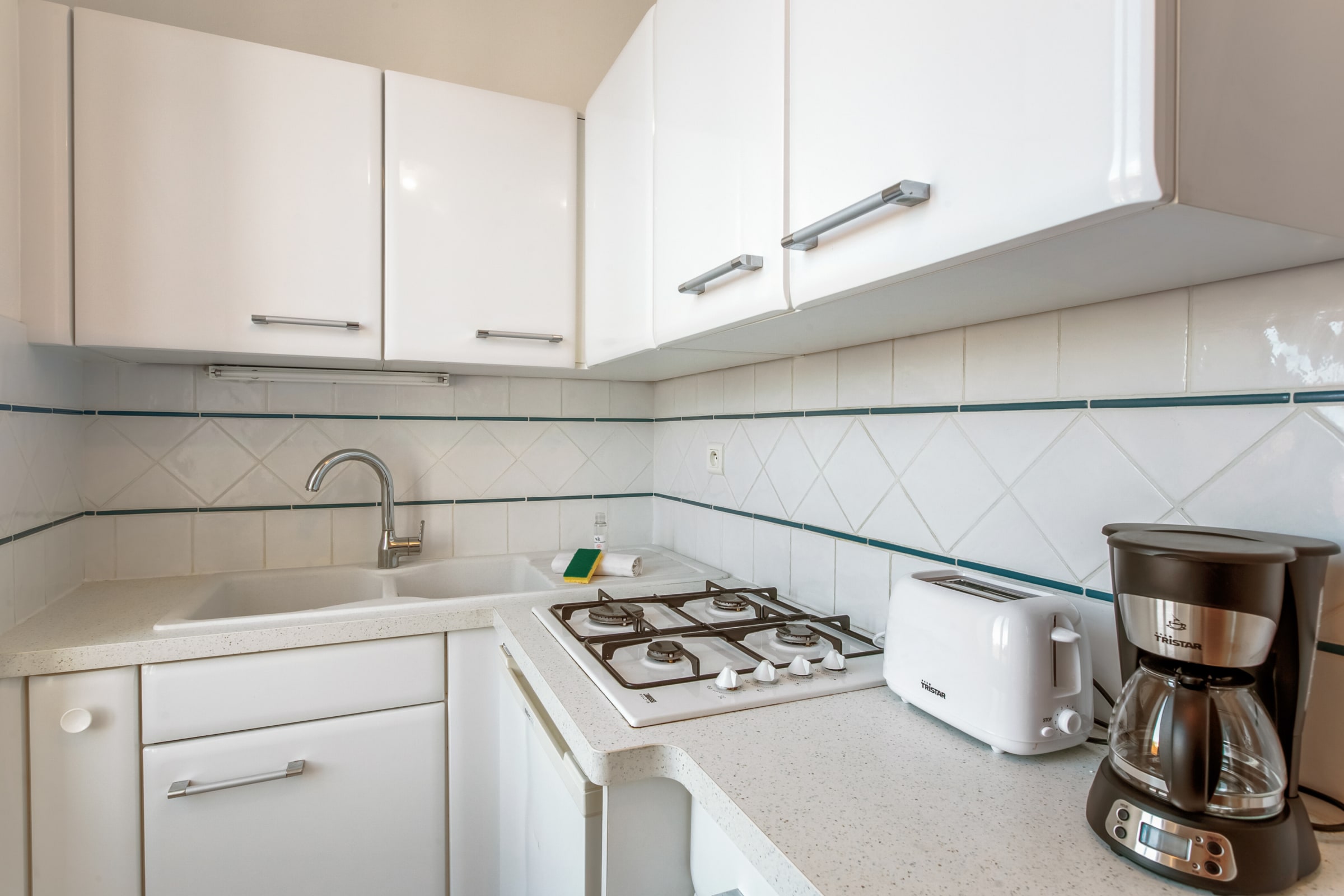 - a fully-equipped open kitchen (filter coffee machine, kettle, oven, fridge and induction cooker),