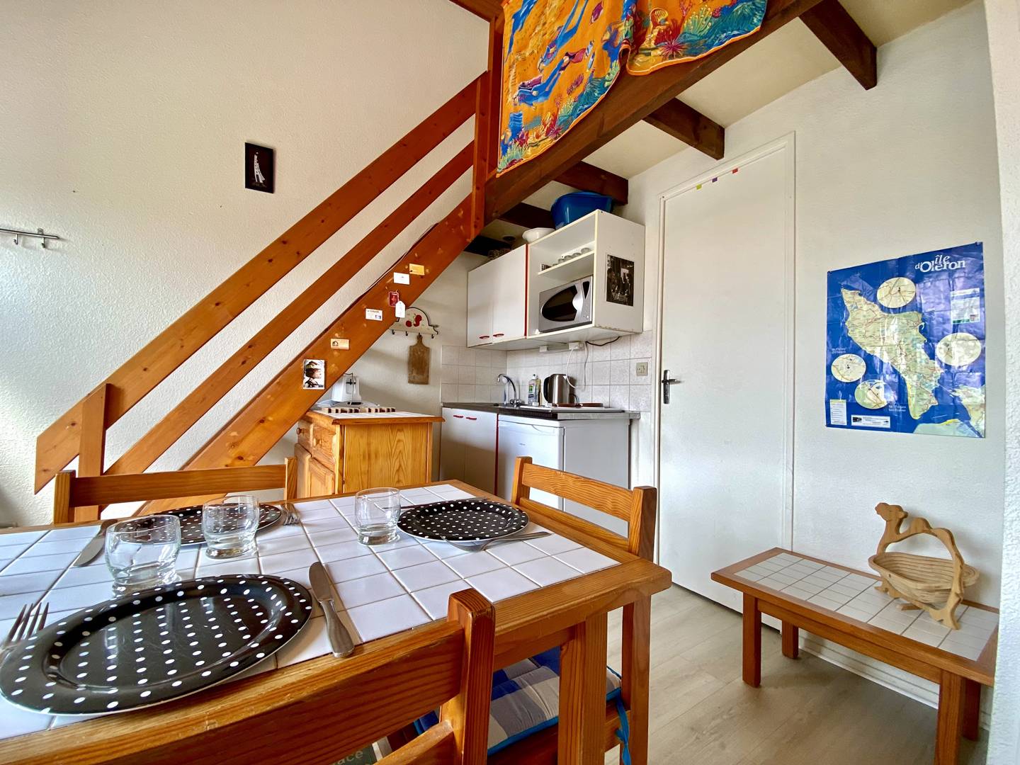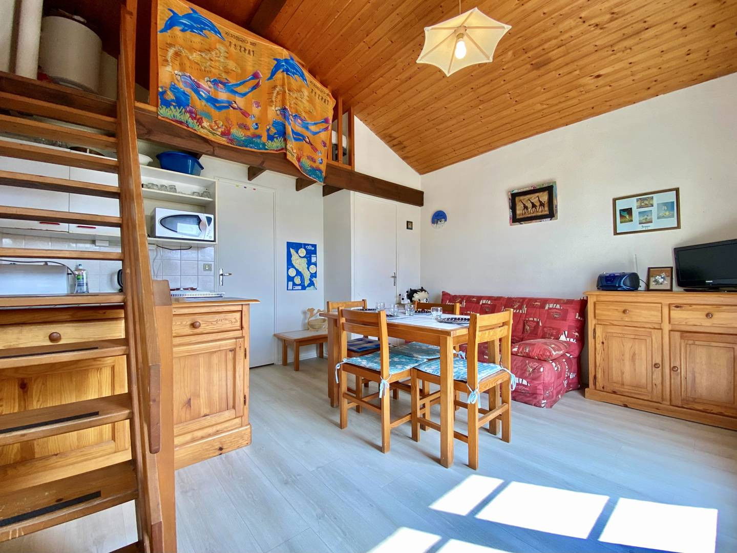 Dolus d'Oléron (17) - La Rémigeasse 2-room apartment - approximately 36 m² - up to 4 people In a residence near the seaside, apartment on the 1st floor with balcony consisting of a living room with fitted kitchen area and sofa , a bedroom with a double bed (140) and storage, a mezzanine with two single beds (90x2) and storage, a bathroom with separate WC in a row and a balcony with furniture of garden. The advantages of this seaside rental: 600 meters from a very beautiful fine sandy beach with nautical activities, free parking for residents, close to cycle paths. Cleaning included. Delivery and return of keys exclusively to the Oléron agency (city of Saint Pierre).