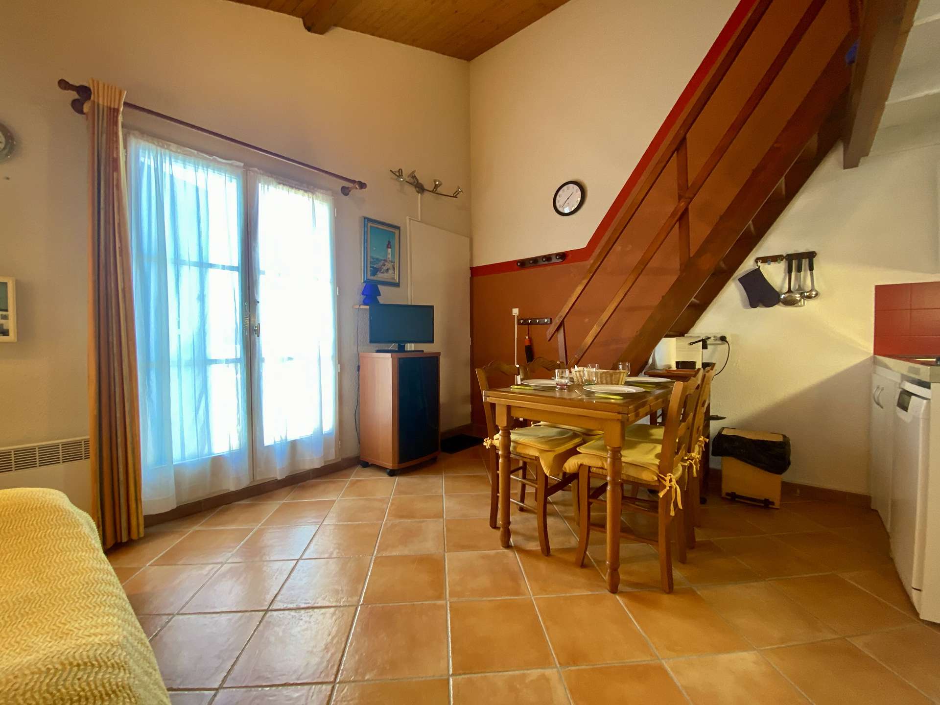Agréable appartement au 1er étage se composant d’un séjour coin cuisine équipé et aménagé et canapé convertible (140), d’une chambre avec deux couchages (140), d’une salle d’eau traversante avec WC indépendant et d’une mezzanine mansardée avec 2 couchages ( lits 2x90). En extérieur, petit balcon avec mobilier de jardin. Place de parking dans la résidence.