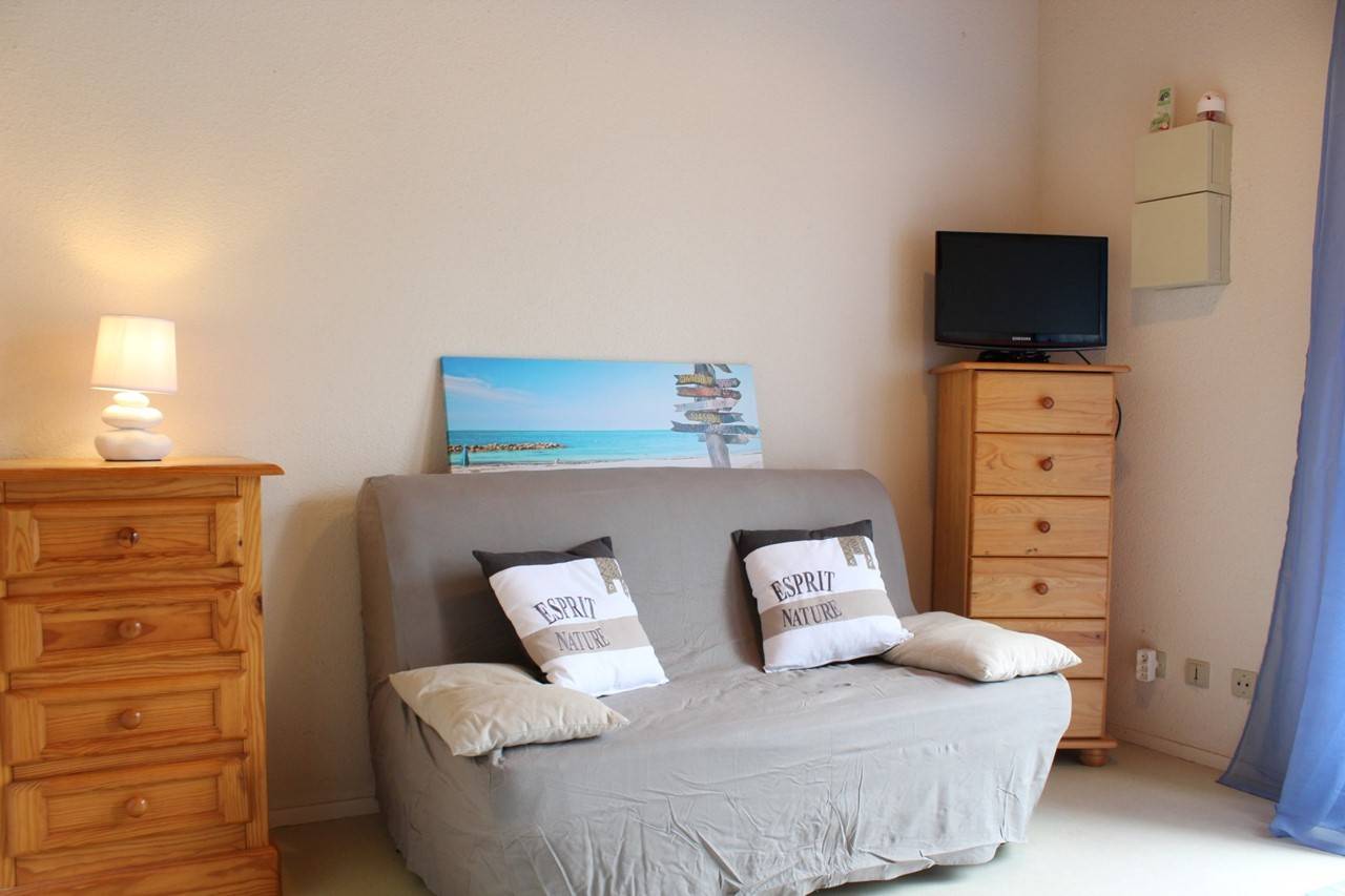 Dolus d'Oléron (17) - La Rémigeasse 2-room apartment - approximately 33 m² - up to 4 people In a residence near the seaside, cozy apartment on the 1st floor consisting of a living room with recent fitted kitchen and sofa bed two places (BZ - 140), a bedroom with a double bed (140), wall cupboard and chest of drawers, a bathroom with separate WC in a row and a balcony. Auxiliary heating for off-season periods. The advantages of this seaside rental: 600 meters from a very beautiful fine sandy beach with nautical activities, free parking for residents, close to cycle paths. Cleaning included. Delivery and return of keys exclusively to the D'Oléron agency (Saint Pierre district).