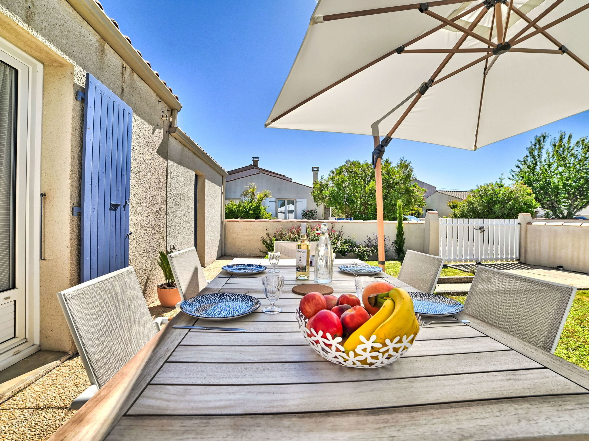 Single-family house "Les Pâquerettes". In the resort 550 m from the centre of La Brée les Bains, in a quiet position, 1 km from the sea, 1 km from the beach. Private: garden 200 m2 (fenced) with lawn and wildlife garden. Terrace (20 m2), garden furniture, barbecue, parking at the house. Shop, grocery 550 m, supermarket 5.4 km, restaurant, bar, bakery, café, bicycle rental 550 m, bus stop "Office de tourisme 17840" 300 m, railway station "Rochefort sur mer" 57 km, sandy beach "La Brée les Bains" 1 km. Sports harbour 3.8 km, golf course (9 hole) 14 km, surf school 5 km. Nearby attractions: Iléo centre aquatique 17 km, Phare de Chassiron 7 km, Port de la Cotiniere 14 km, Corderie Royale Rochefort 55 km, La rochelle 90 km.