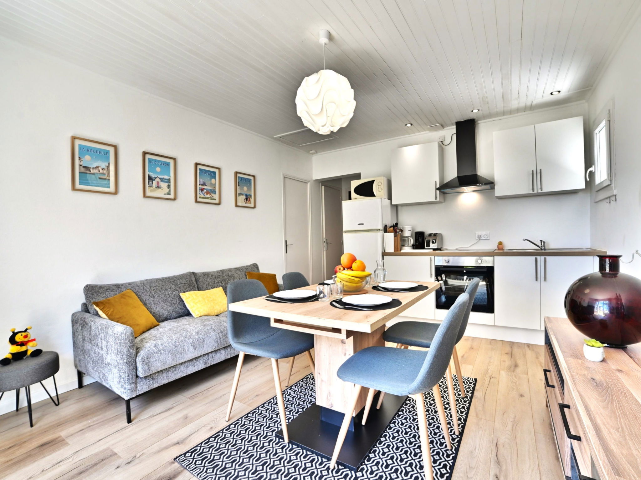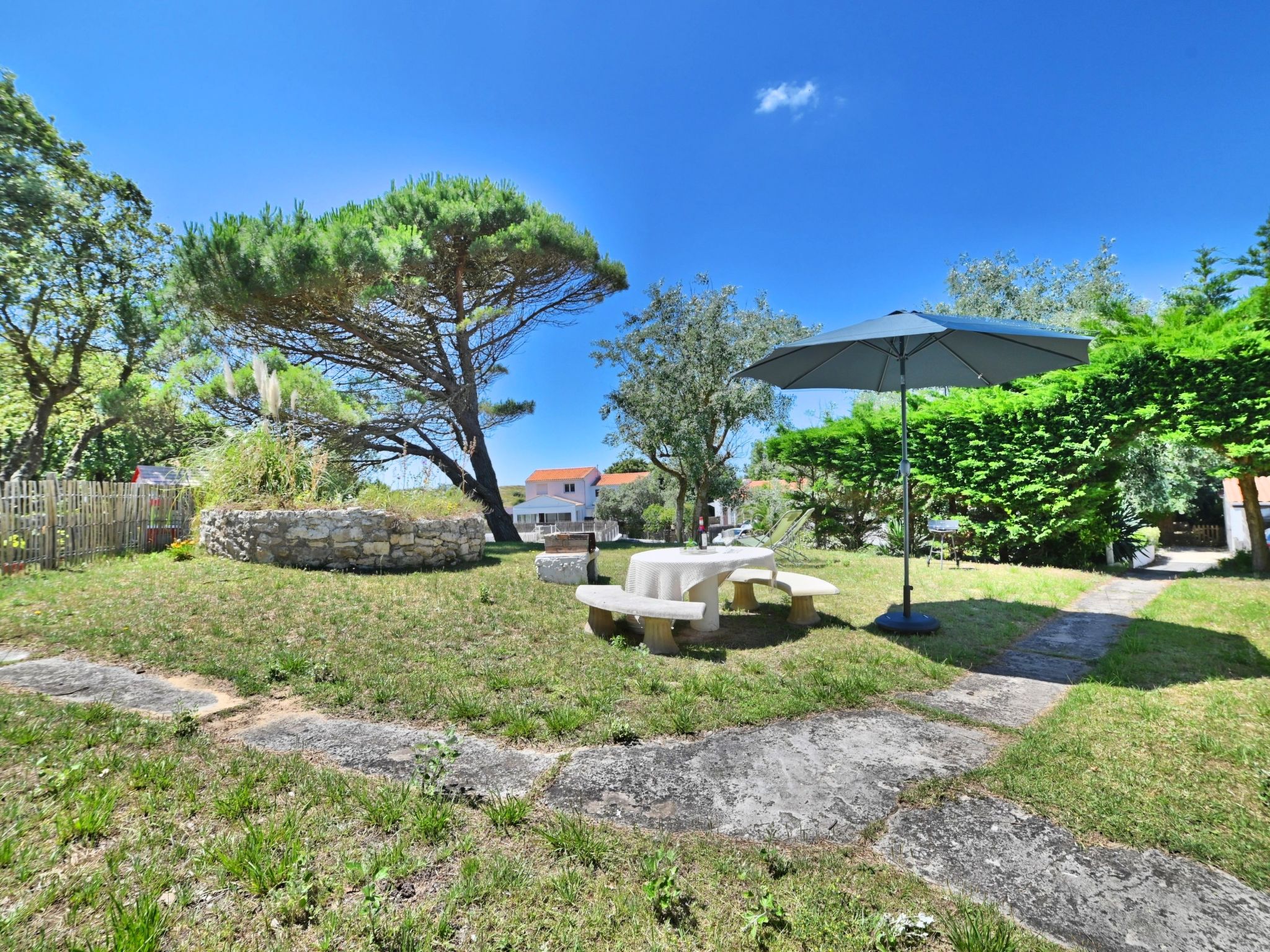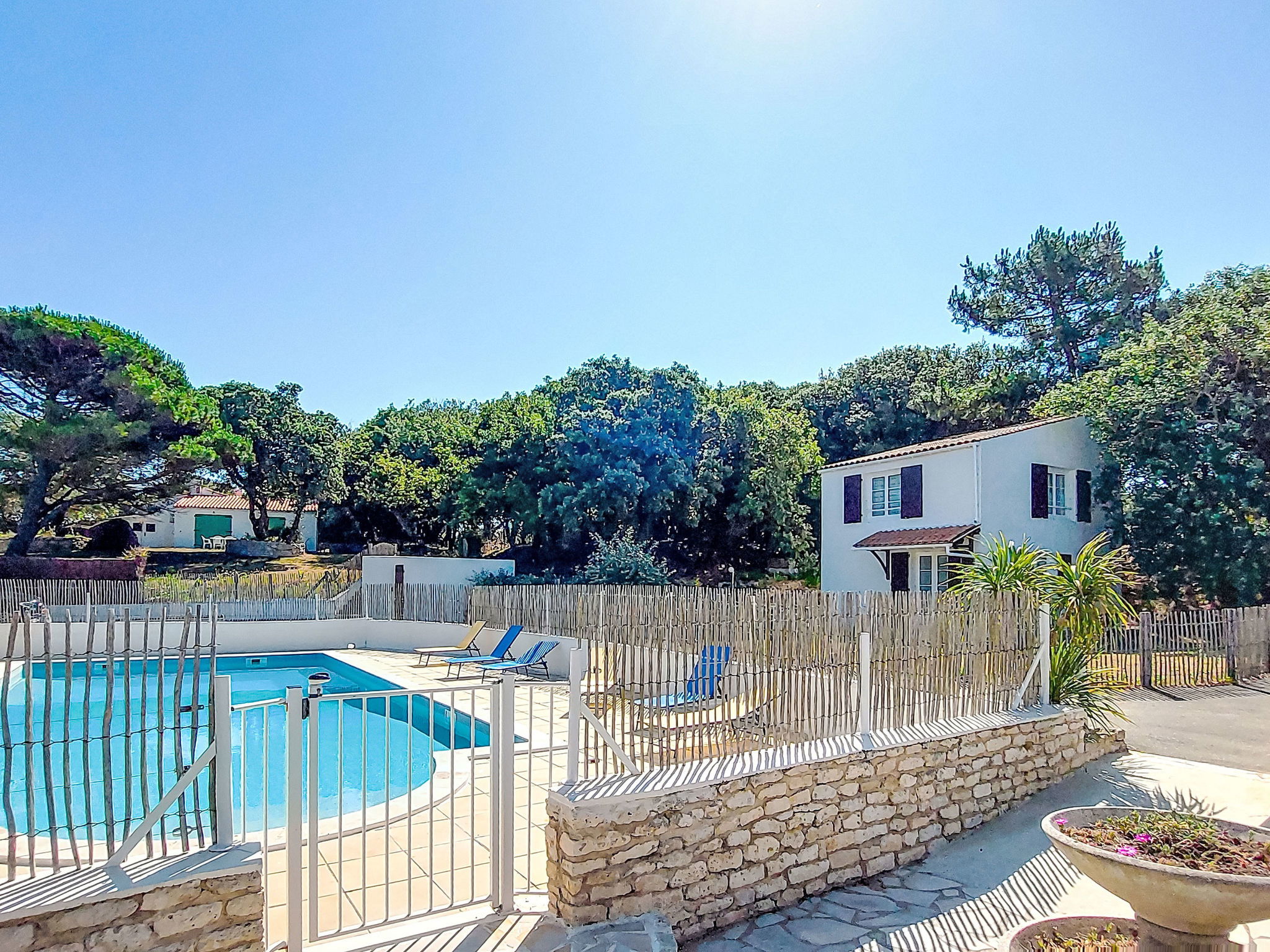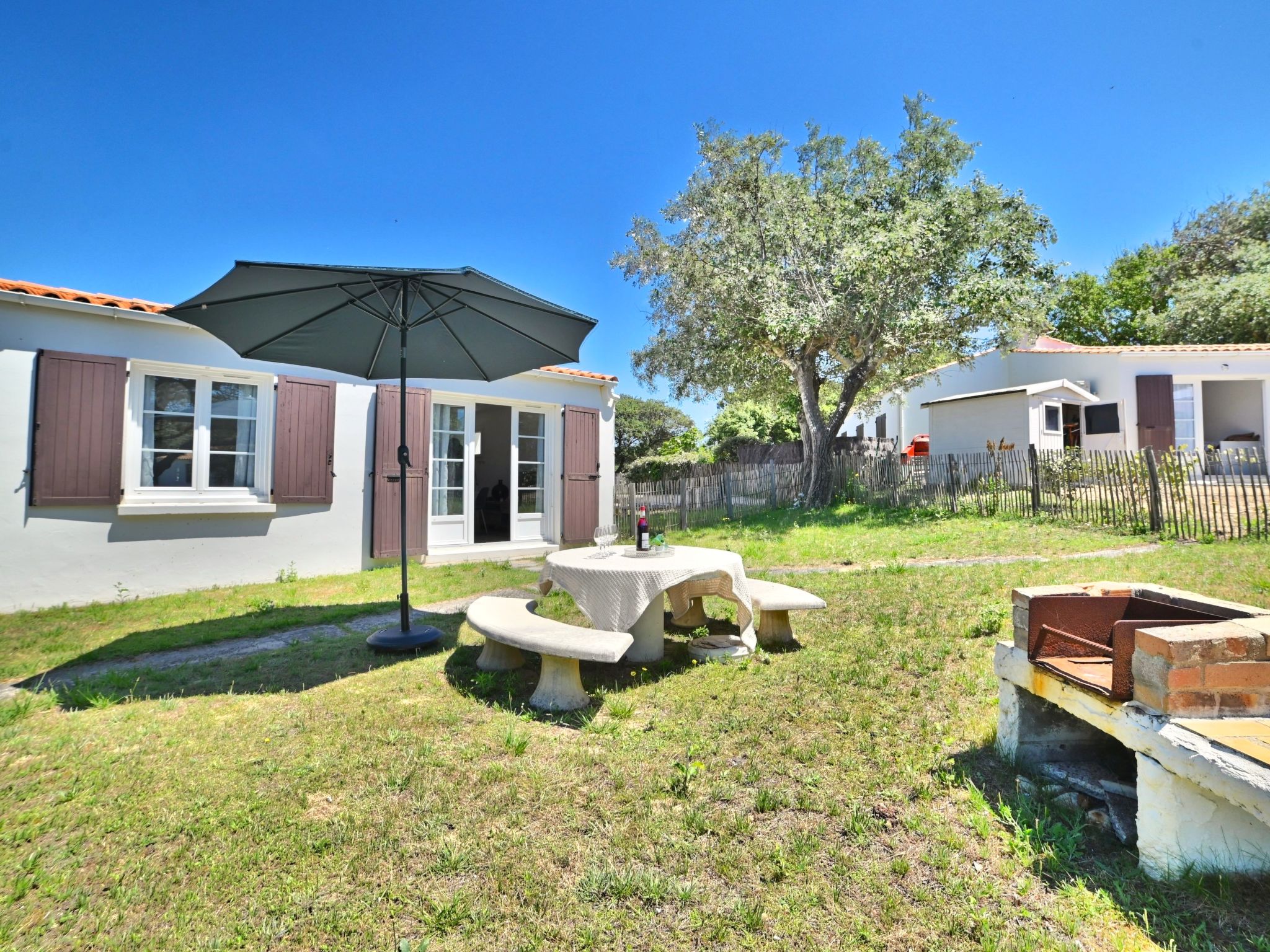 Single-family house "Les Cariatides 2". In the resort 1.5 km from the centre of La Cotinière, in a secluded, quiet, sunny position, 6 km from the edge of the forest, 100 m from the sea, 100 m from the beach, direct access to the beach. For shared use: swimming pool angular with privacy, fenced (13 x 8 m, 104 m2, depth 110 - 200 cm, seasonal availability: 01.Mar. - 31.Oct. pool opening hours: 10:00-20:30). Outdoor shower. Private: well-kept garden 450 m2 (fenced) with lawn. Terrace, garden furniture, barbecue, parking at the house. Shop 1.5 km, grocery 1.5 km, restaurant 1.5 km, bar 1.5 km, bakery 1.5 km, café 1.5 km, pedestrian zone 1.5 km, bicycle rental 1.5 km, bus stop "Gare routière 17310" 4 km, sandy beach "Baie de la Brimaudiere" 100 m. Sports harbour 1.5 km, golf course (9 hole) 14 km, surf school 8 km, cycle lane 10 m. Nearby attractions: Iléo centre aquatique 12 km, Phare de Chassiron 17 km, Port de la Cotinière 1.5 km, Corderie Royale Rochefort 50 km, La Rochelle 86 km. Residence with electric gates.