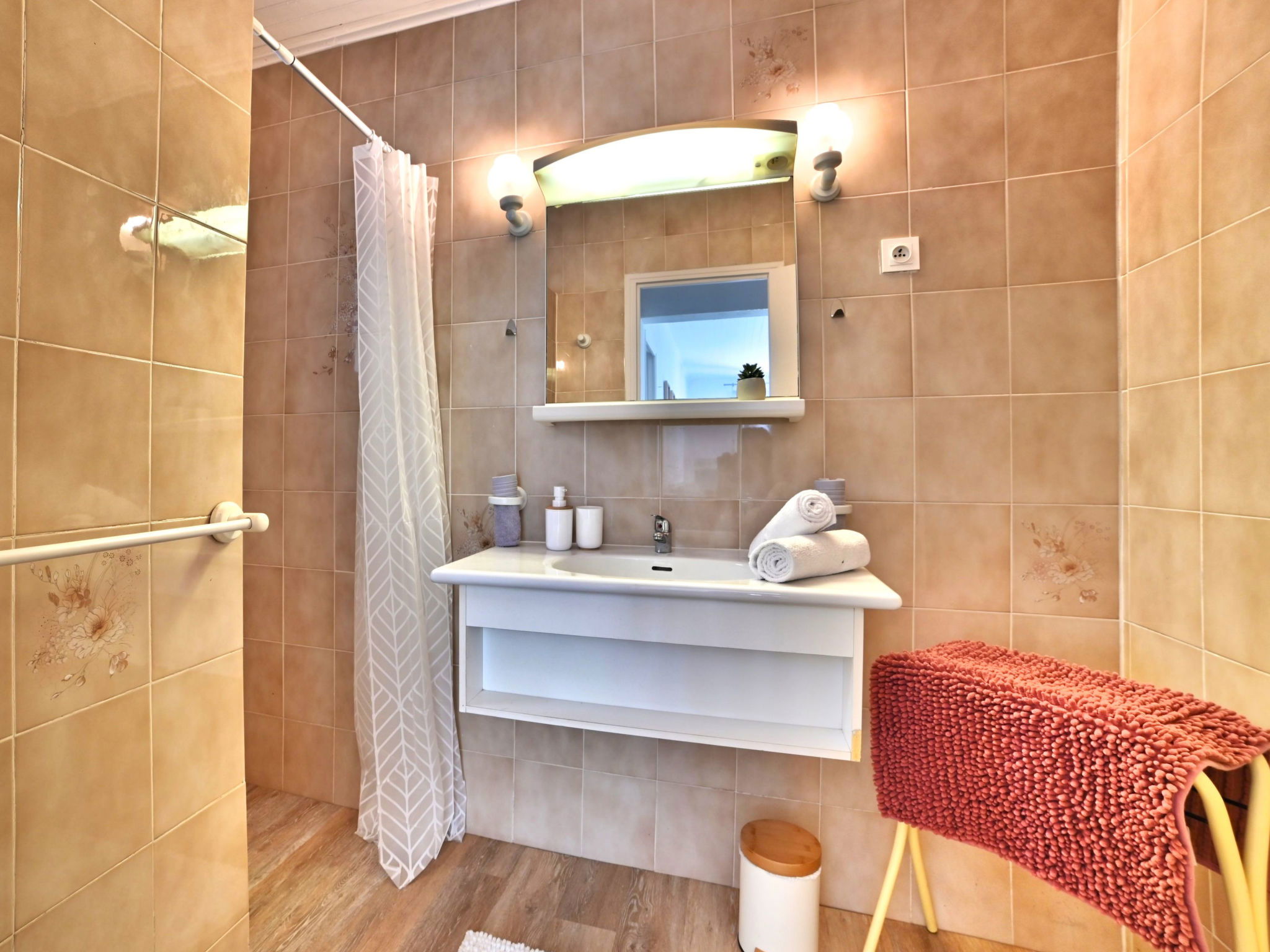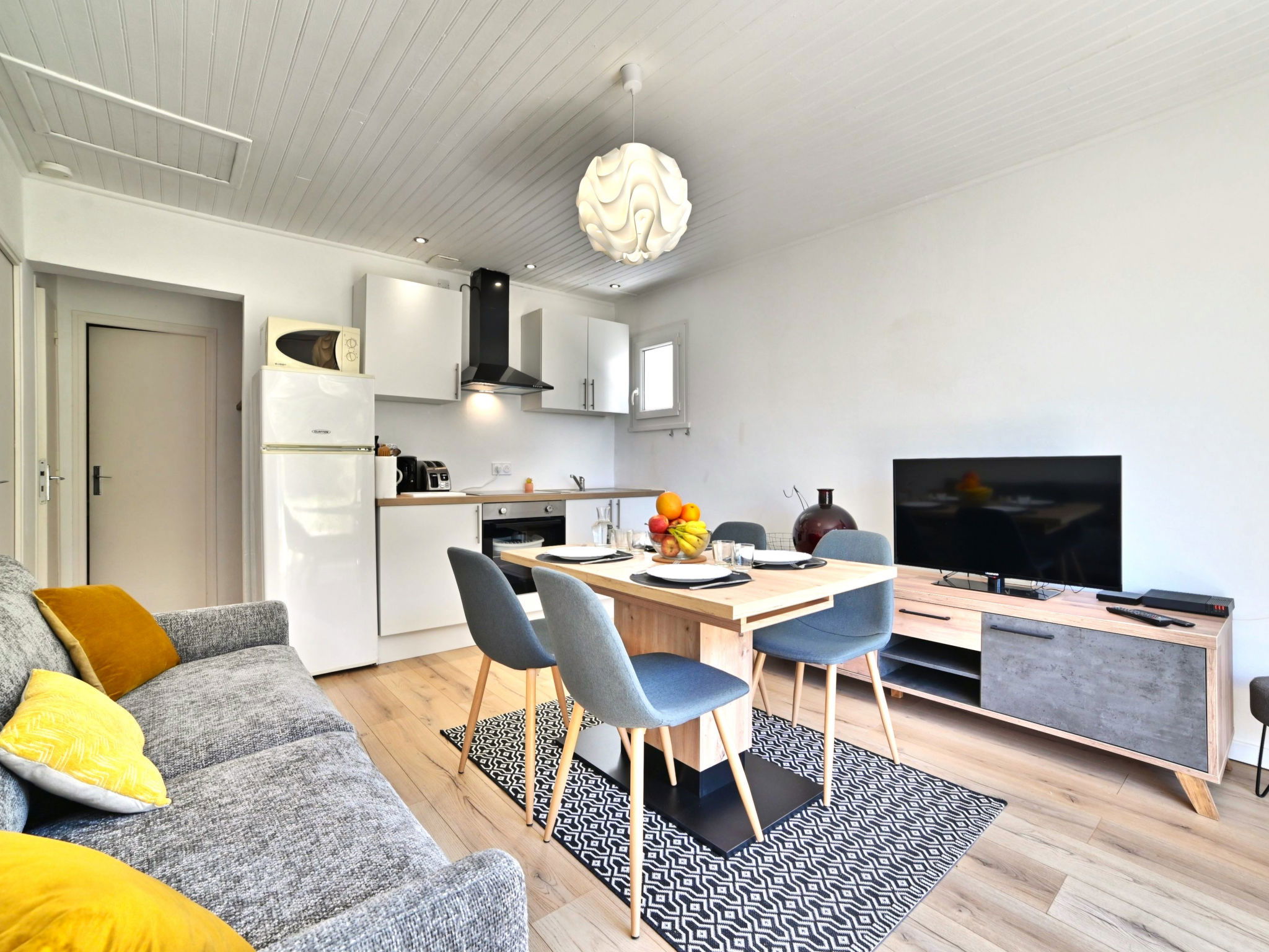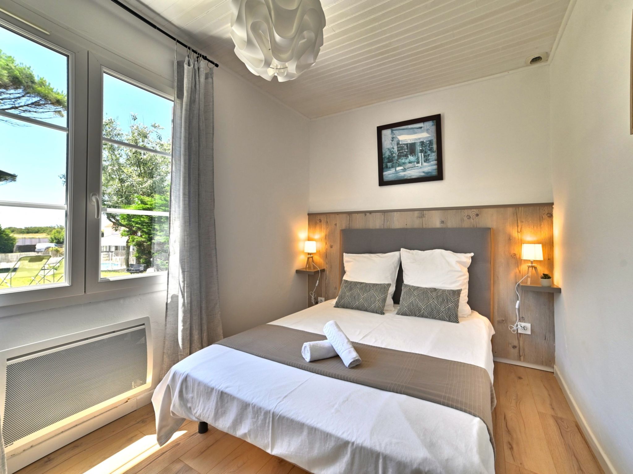 3-room house 43 m2. Comfortable and beautiful furnishings: living/dining room with TV (flat screen). Exit to the garden. 1 room with 1 french bed (140 cm, length 190 cm). 1 room with 1 pull-out bed (2 x 90 cm, length 190 cm). Open kitchen (oven, 3 induction hot plates, toaster, kettle, microwave, electric coffee machine). Bathroom, sep. WC. Electric heating. Terrace. Terrace furniture, barbecue. View of the garden. Facilities: washing machine, hair dryer. Internet (WiFi, free). Parking (1 car) at the house. Please note: non-smoking house. Smoke alarm. Offer by a private individual according to Art. 155, IV of CGI. FR09F51G