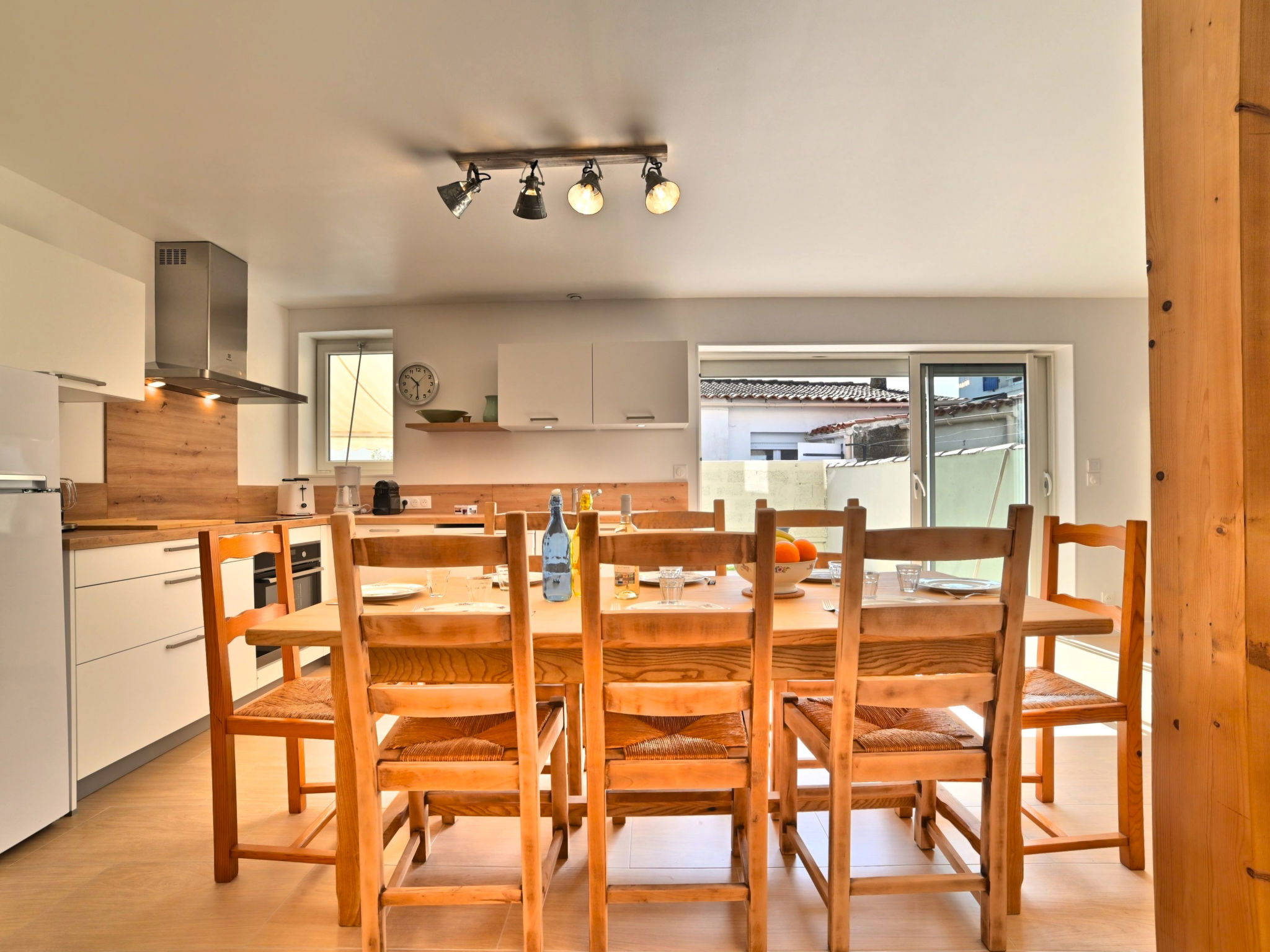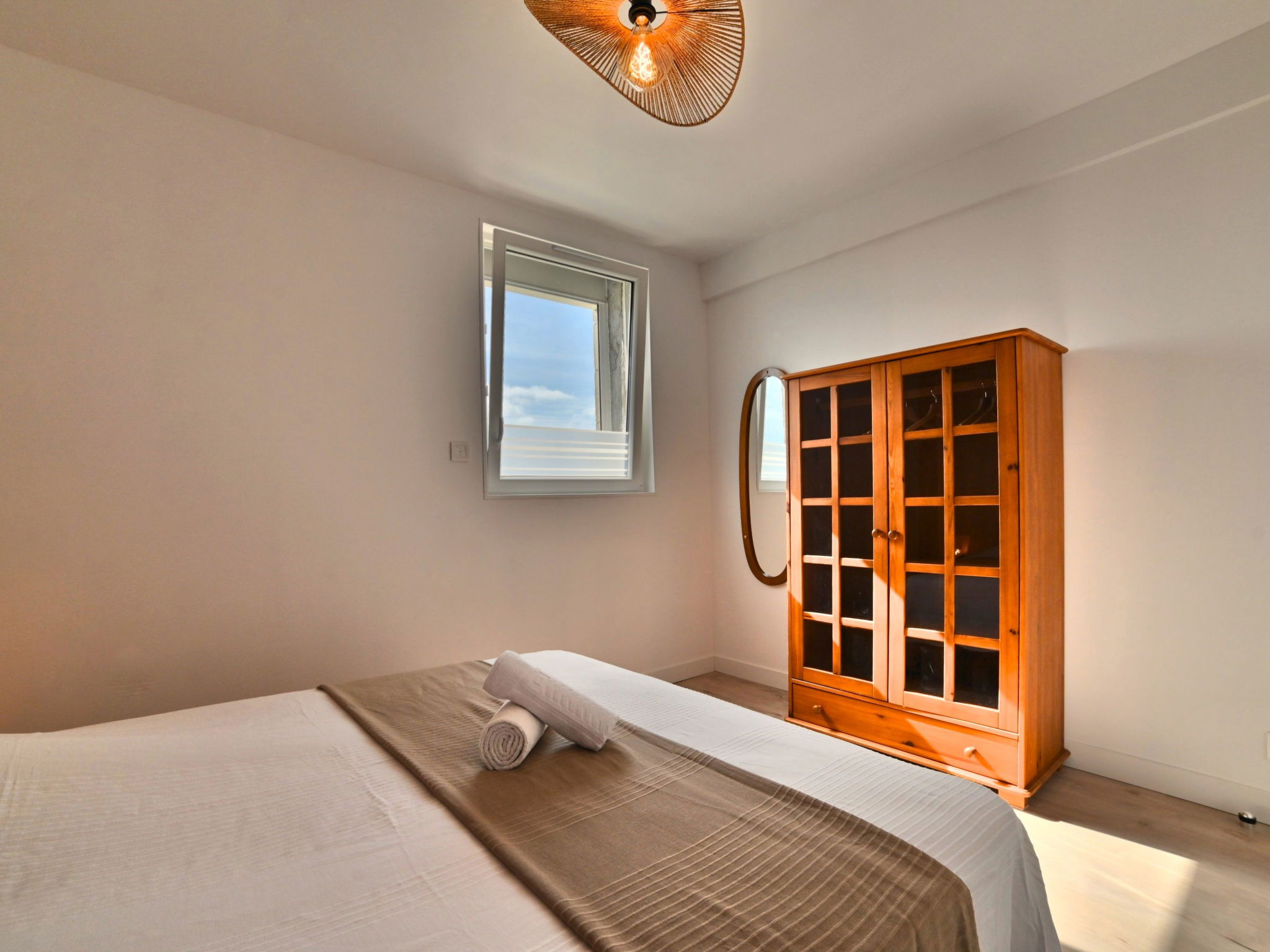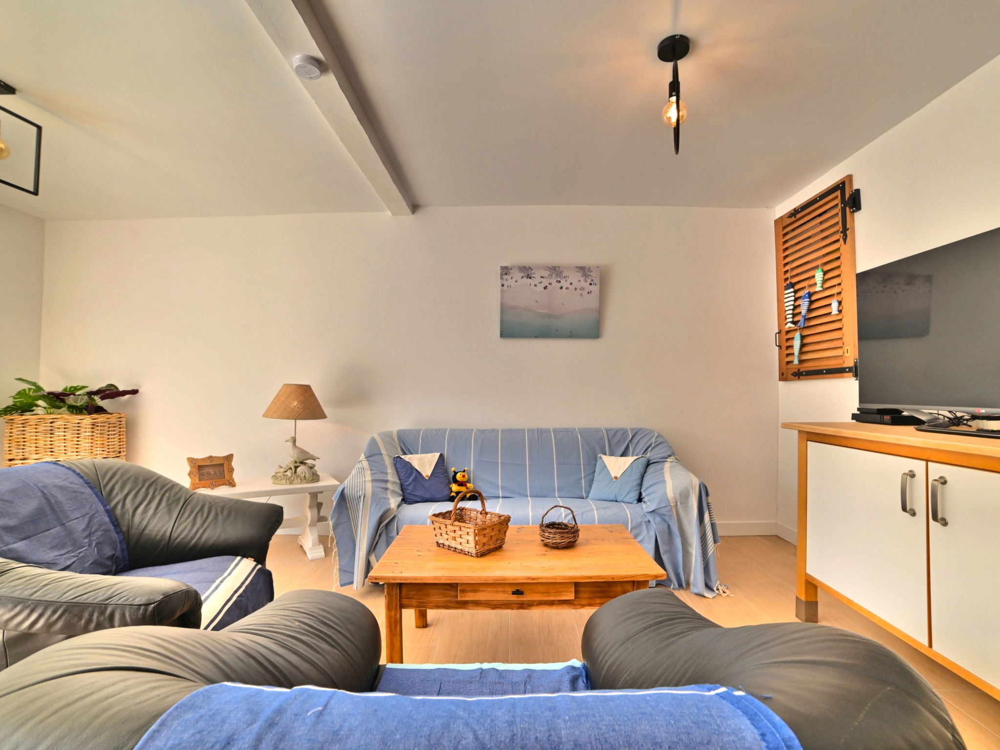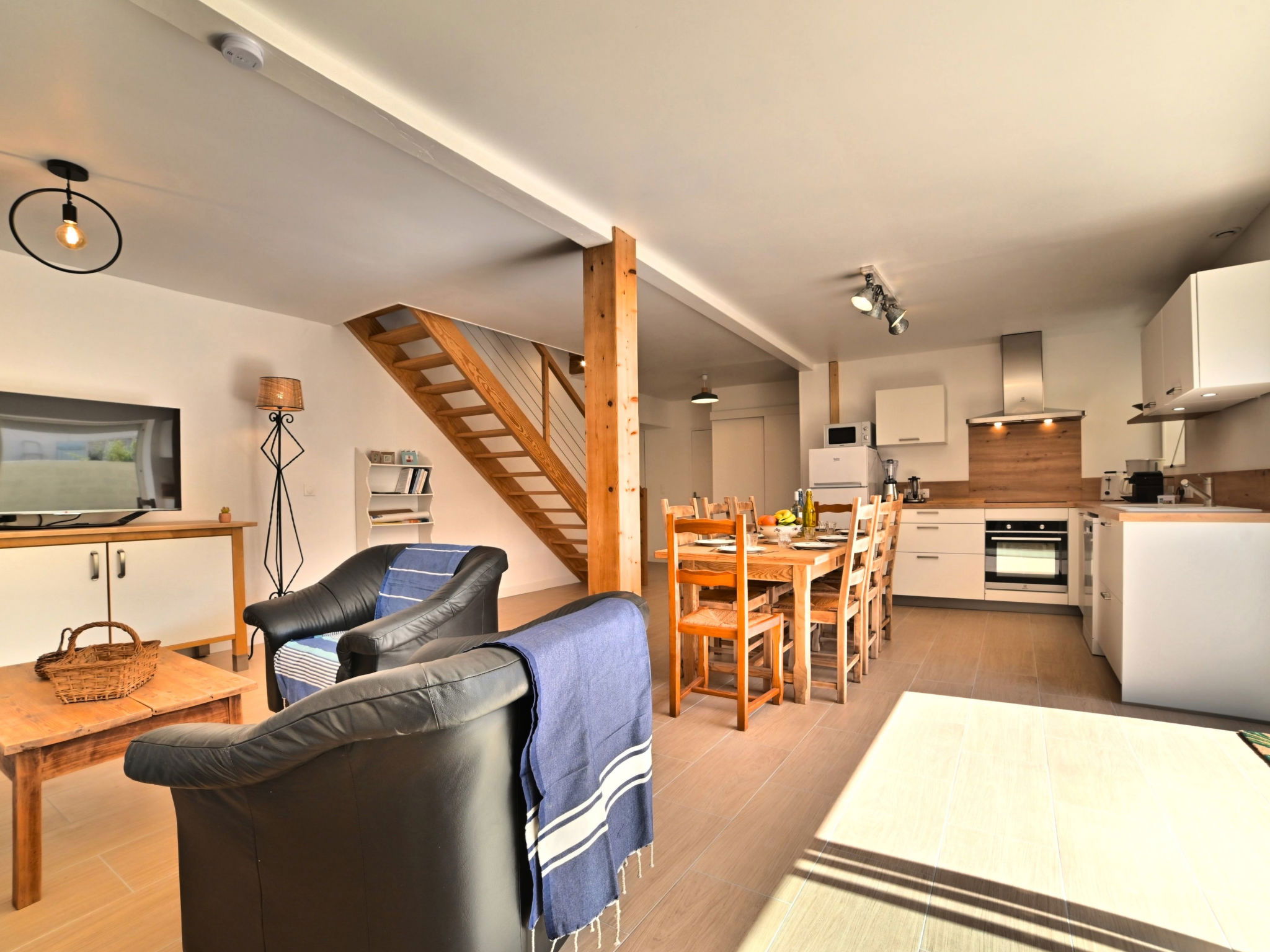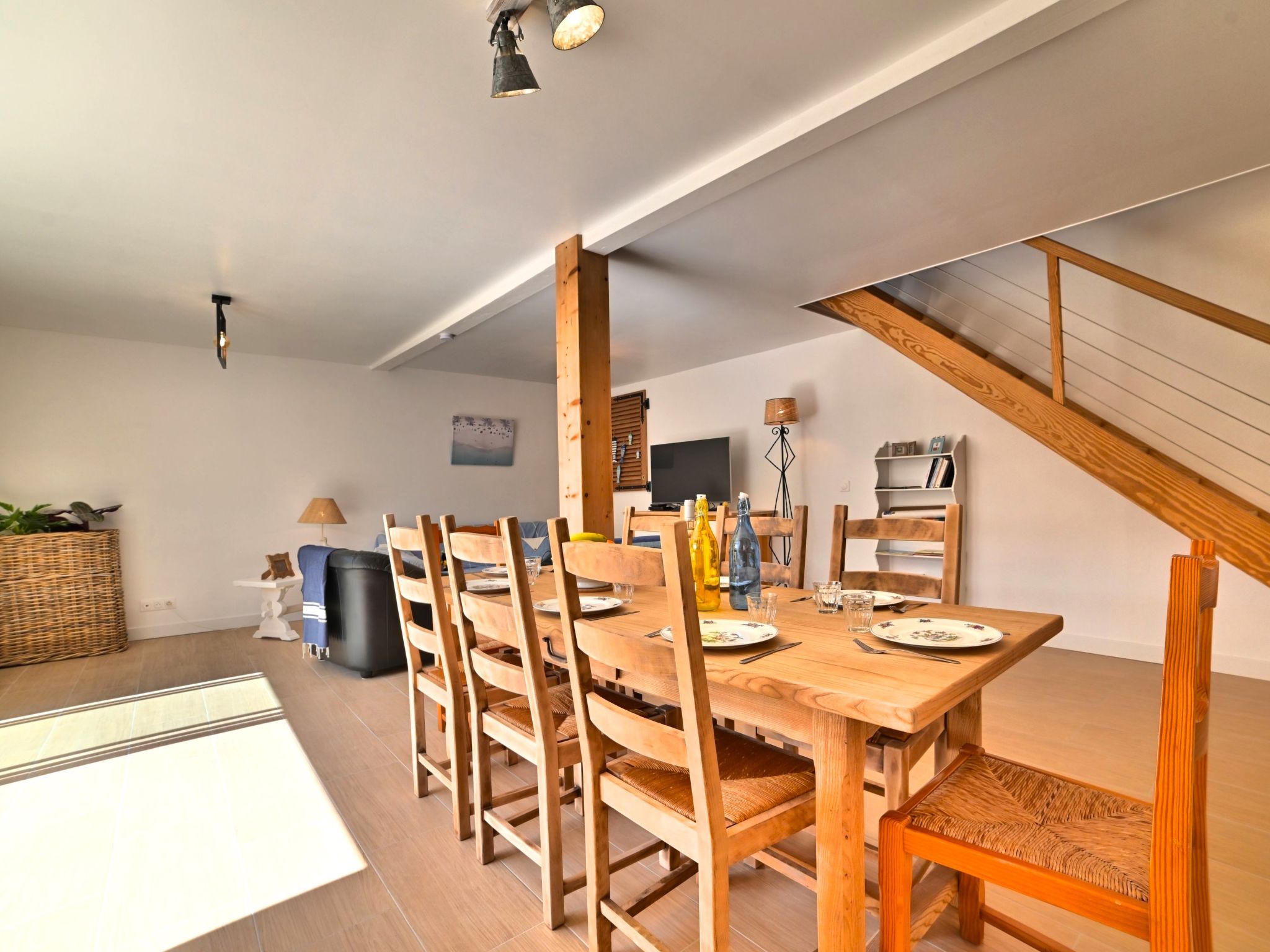5-room terraced house 120 m2 on 2 levels. Comfortable and beautiful furnishings: living/dining room with TV (flat screen). Exit to the terrace. 1 room with 1 french bed (1 x 140 cm, length 190 cm). Open kitchen (oven, dishwasher, 3 induction hot plates, toaster, kettle, microwave, electric coffee machine). Bathroom, sep. WC. Electric heating. Upper floor: 1 room with 1 french bed (1 x 140 cm, length 190 cm). 1 room with 1 french bed (1 x 140 cm, length 190 cm). 1 room with 2 beds (90 cm, length 190 cm). Bathroom, sep. WC. Terrace 40 m2. Terrace furniture, barbecue. Facilities: washing machine, hair dryer. Internet (WiFi, free). Parking at the house. Please note: smoke alarm. Offer by a private individual according to Art. 155, IV of CGI. 17093000105BF