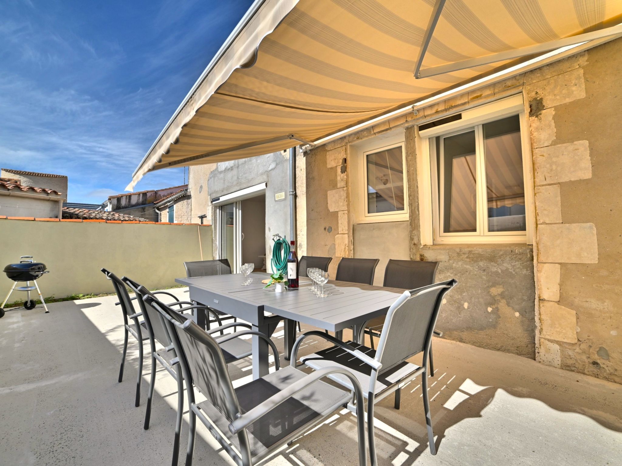 Large terraced house "La Picotelle", 2 storeys. In the resort 1.2 km from the centre of Le Château d'Oléron, 1.3 km from the sea, 1.3 km from the beach. In the house: WiFi. Parking at the house. Shop 1.2 km, grocery 1.2 km, supermarket 300 m, restaurant 1.2 km, bar 1.2 km, bakery 1.2 km, café 1.2 km, bicycle rental 1.2 km, bus stop "La Gaconnière ()" 1.1 km, railway station "Rochefort sur mer" 37 km, sandy beach "La Phibie" 1.3 km. Sports harbour 1.5 km, golf course (9 hole) 10 km, surf school 6 km, cycle lane 50 m. Nearby attractions: Iléo centre aquatique 6 km, Phare de Chassiron 26 km, Port de la Cotinière 12 km, Corderie Royale Rochefort 34 km, La Rochelle 37 km.