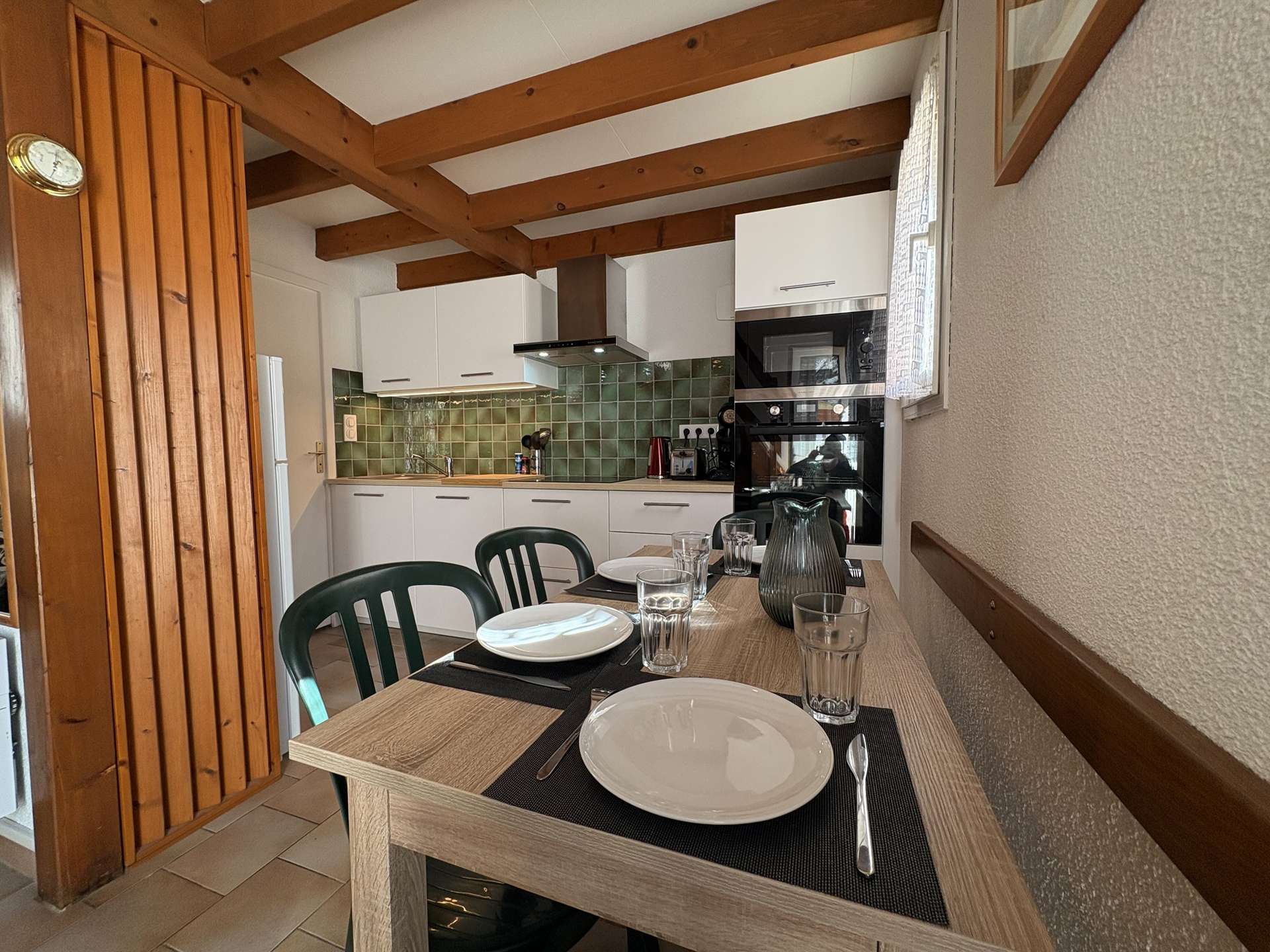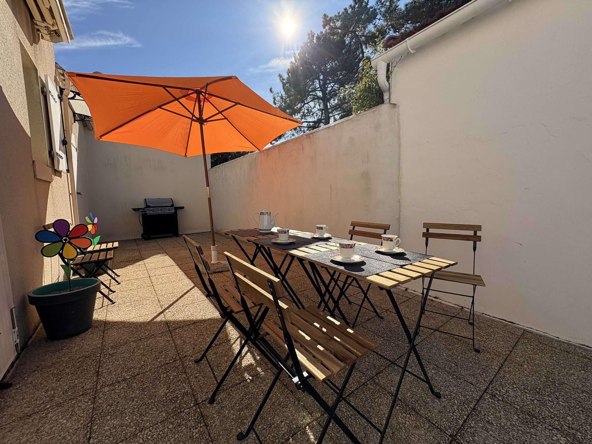 A l’étage, d'une chambre deux couchages (140) et d'un coin nuit avec deux couchages en mezzanine (140). En extérieur, la maison dispose d'une agréable cour avec mobilier de jardin et barbecue!
