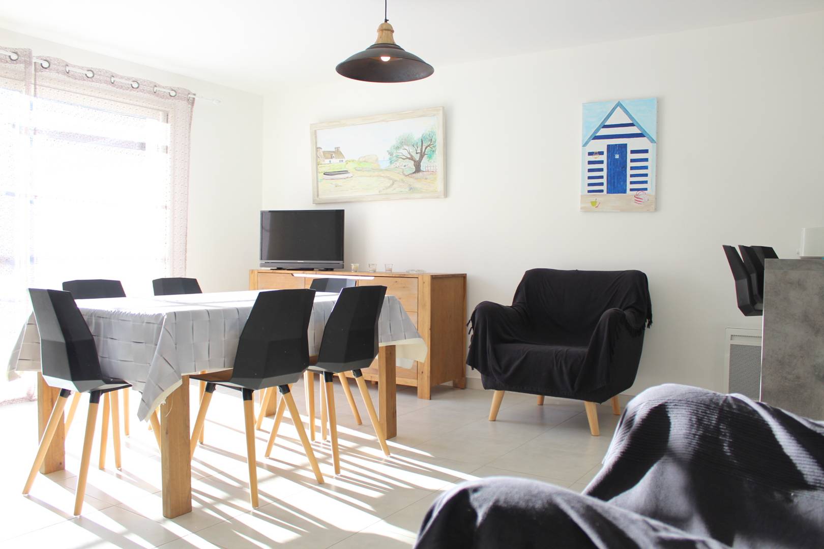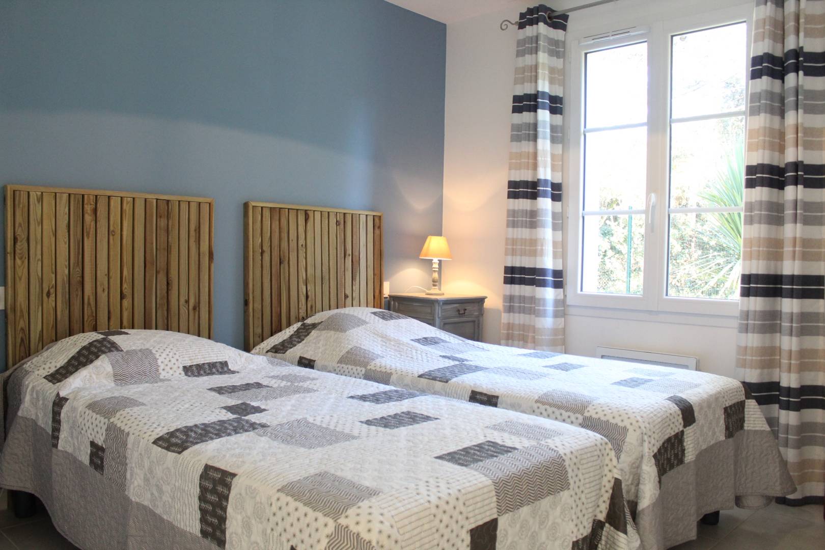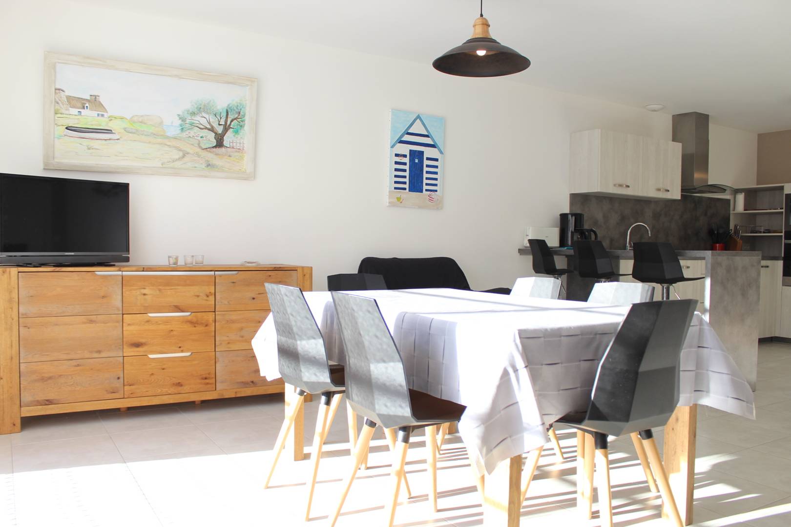 DOLUS D'OLERON (17) - L'ECUISSIERE But 5 rooms - approximately 75m² - up to 6 beds Superb house close to the forest and the beach consisting of a living room with equipped and fitted kitchen, a pantry with washing machine and freezer, a separate toilet, a bedroom with two beds (140) with adjoining shower room, a second bedroom with two beds (90), a shower room with WC, a third bedroom with two beds (140). Outside, enclosed garden with tiled terrace and garden furniture. Parking on the ground. The advantage of this rental by the sea: Close to the beach, forest and cycle paths, parking on the ground, beach access by small path in 7 minutes on foot, cleaning included.