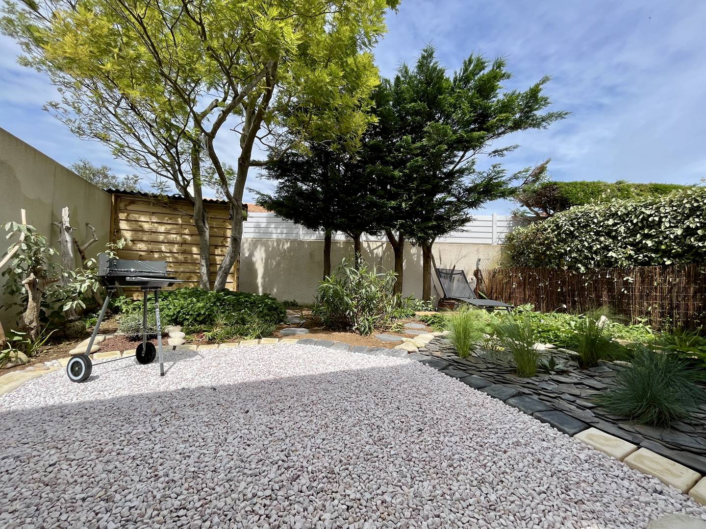 Dans une résidence à 750 mètres de la plage de La Rémigeasse, maison rénovée avec goût dans une résidence comprenant un séjour avec coin-cuisine aménagée et équipée, un coin repas, un cellier, une véranda sans vis-à-vis, une salle d'eau (rénovée en 2024), et un WC séparé. A l'étage une mezzanine avec deux lits un couchage (2x90) et rangements, une chambre avec un lit deux couchages (140) et rangements. A l'extérieur, un jardin clos avec mobilier et barbecue et une petite cour devant. Parking dans la résidence.