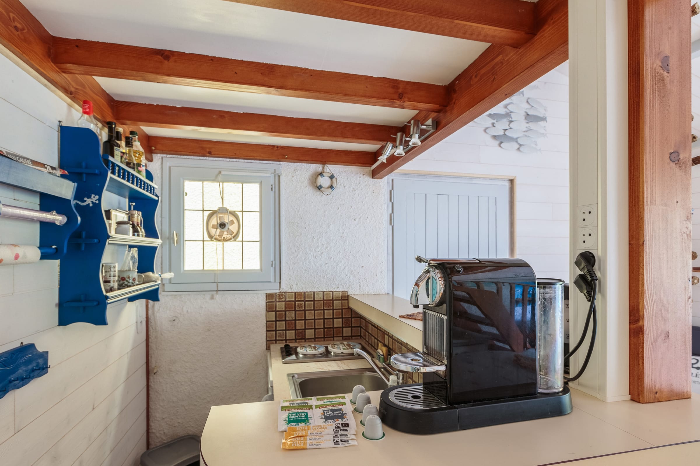- a fully equipped open kitchen (coffee machine, kettle, toaster, microwave, fridge and hotplates),