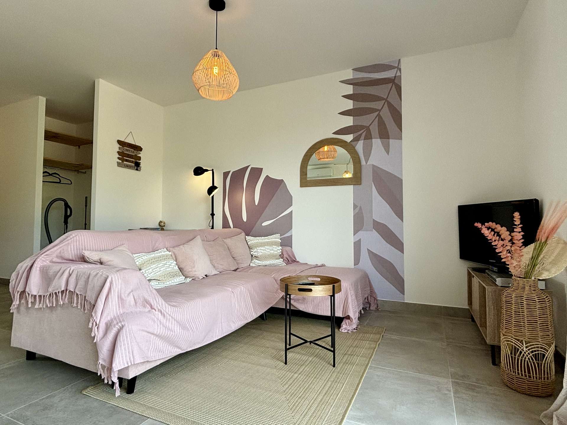 A l'extérieur, jardin clos avec terrasse, mobilier de jardin, parasol, plancha. 2 places de stationnements devant la propriété.