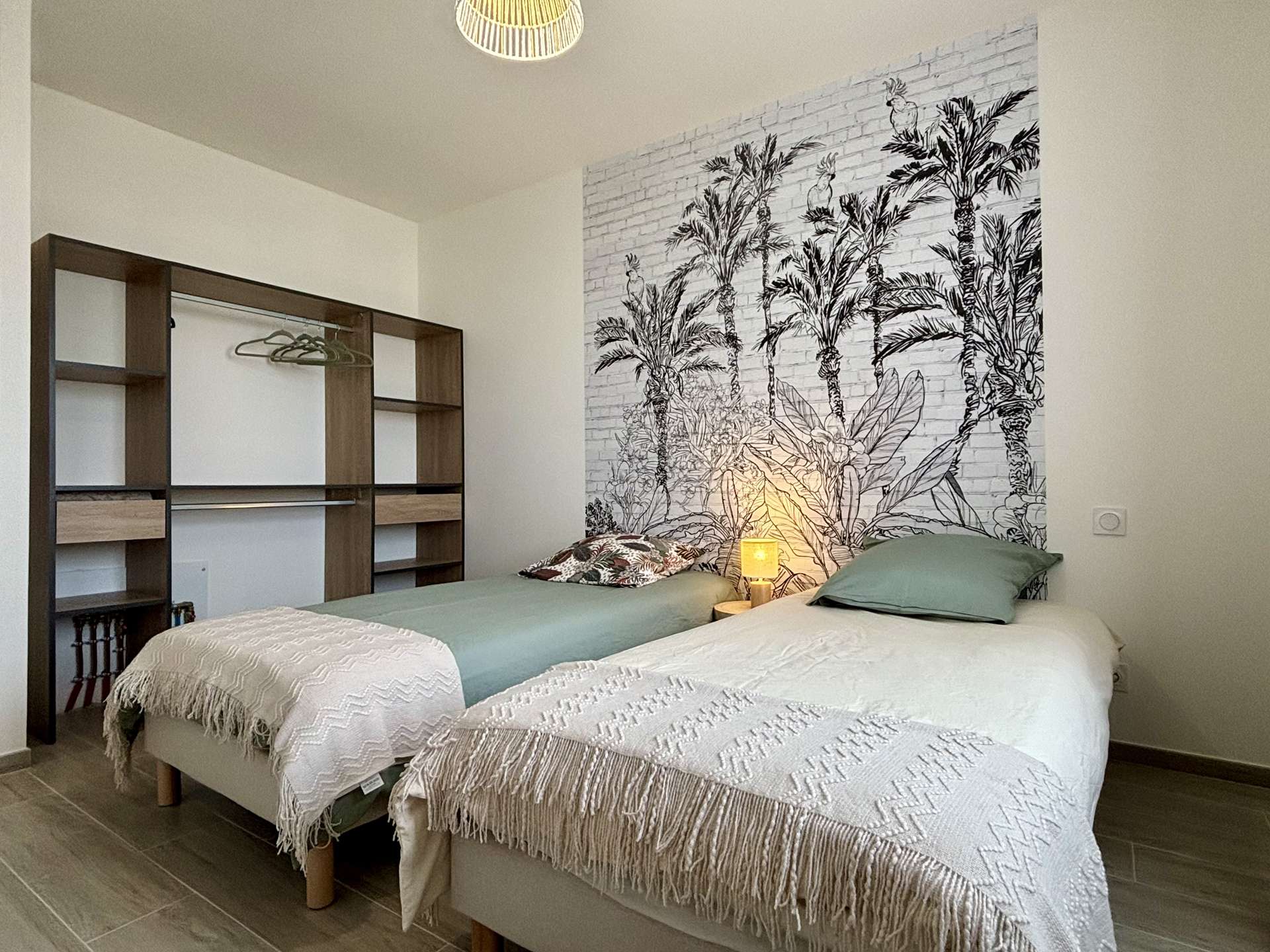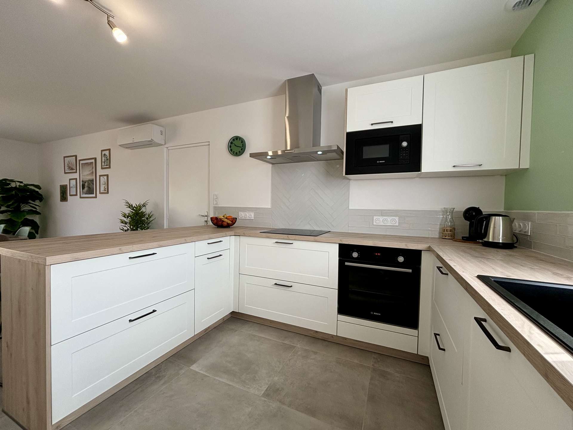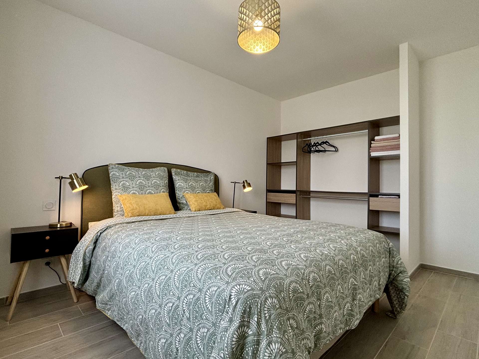 Superbe maison neuve au calme se composant d'une pièce de vie lumineuse avec coin salon/salle à manger avec cuisine entièrement équipée et aménagée ( réfrigérateur et sa partie congélateur, micro-ondes, four électrique, plaque induction, lave-vaisselle, cafetière,bouilloire), d'une première chambre avec deux couchages (160) et d'un dressing, d'une seconde chambre deux couchages ( 90) pouvant être joint,