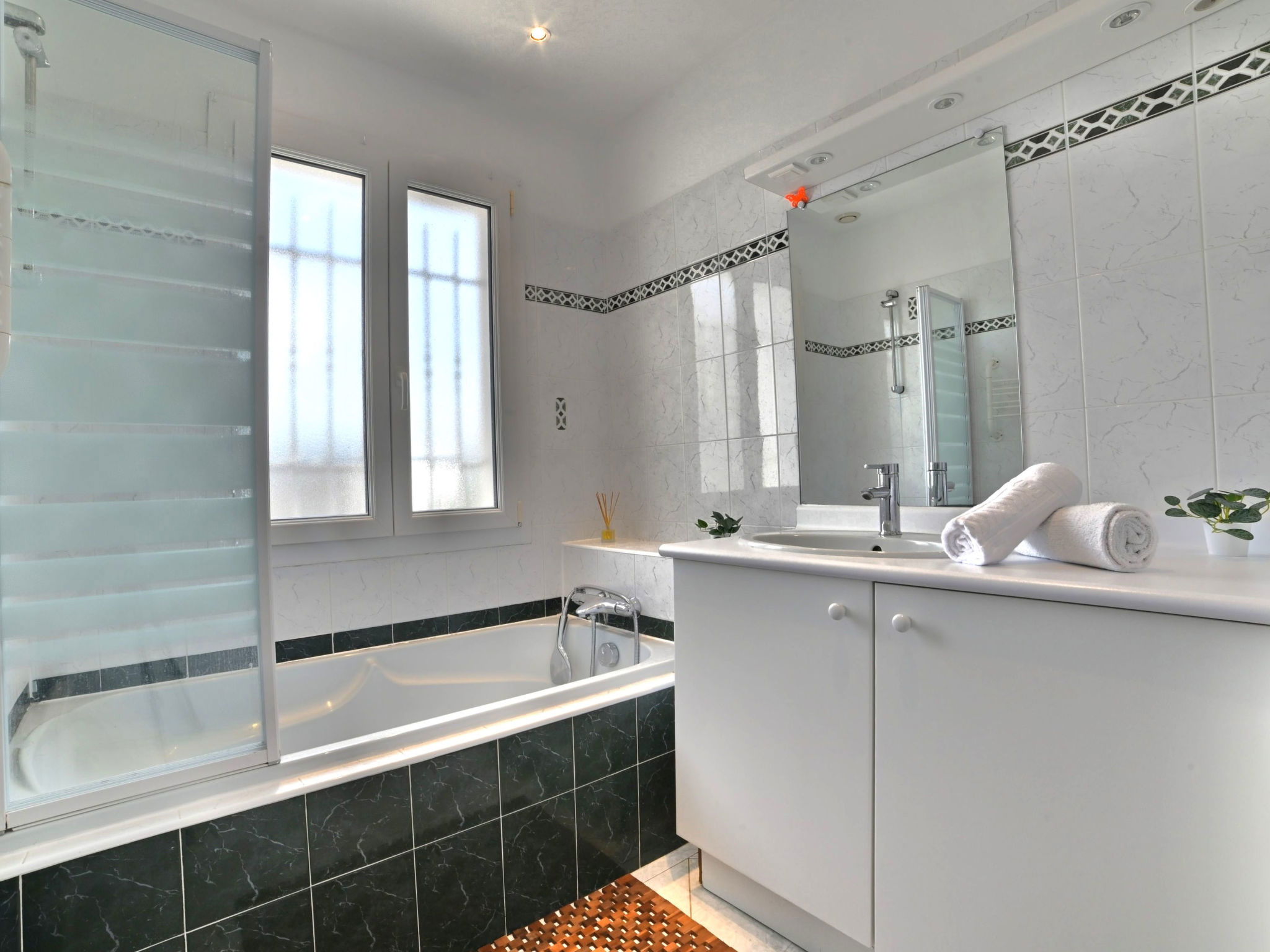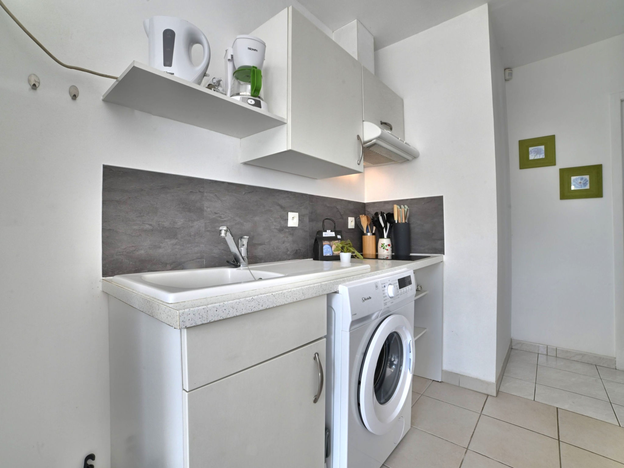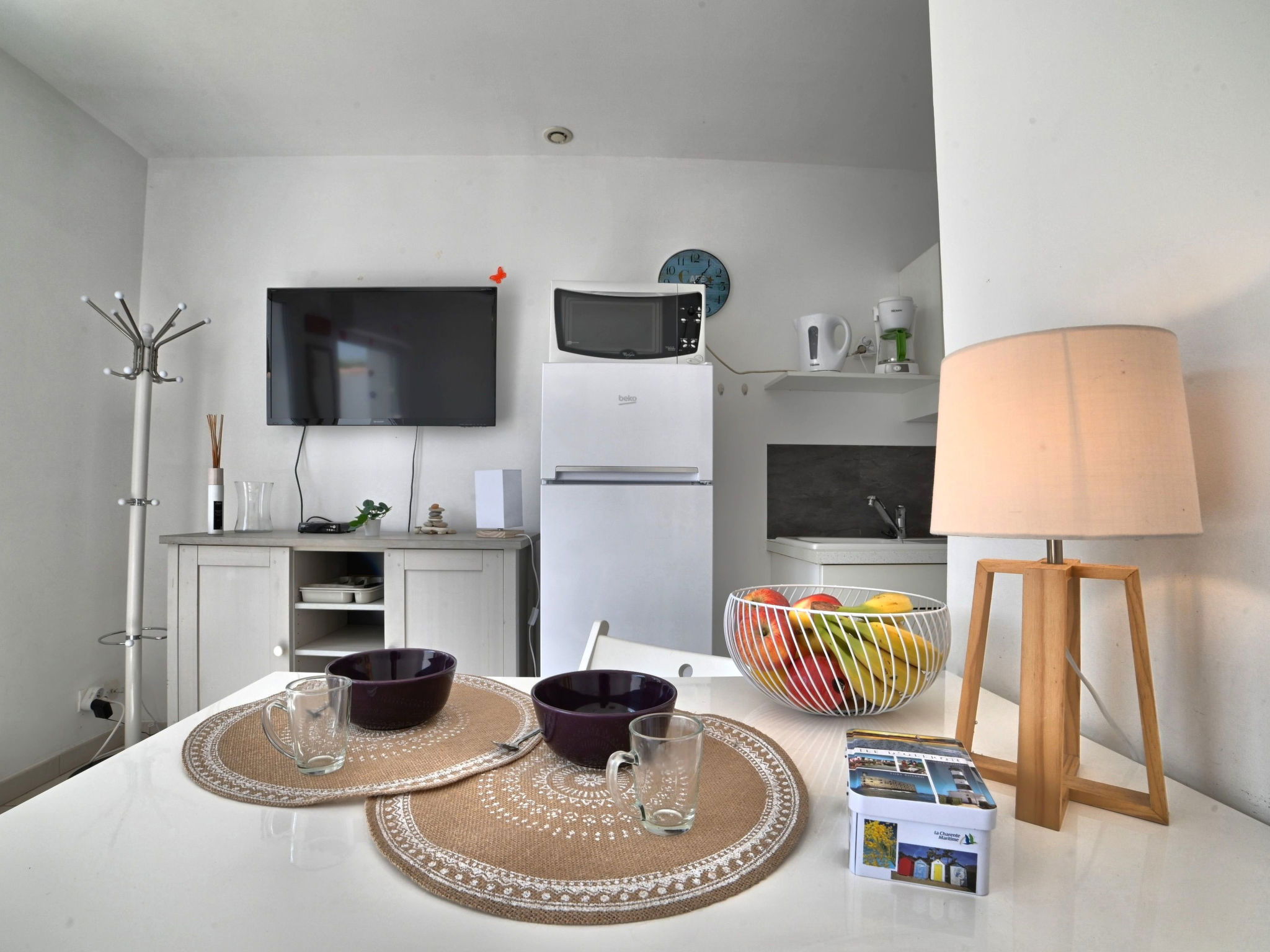 2-room terraced house 40 m2. Simple and comfortable furnishings: living/dining room with 1 double sofabed (1 x 140 cm, length 190 cm), TV (flat screen). Exit to the terrace. 1 room with 1 french bed (1 x 160 cm, length 200 cm). Open kitchen (2 ceramic glass hob hotplates, toaster, kettle, microwave, freezer, electric coffee machine) with dining table. Bathroom, sep. WC. Electric heating. Large terrace 30 m2, south facing position and west facing position. Terrace furniture, barbecue. Facilities: washing machine. Internet (WiFi, extra). Reserved parking. Please note: non-smoking house. Smoke alarm. Offer by a private individual according to Art. 155, IV of CGI.