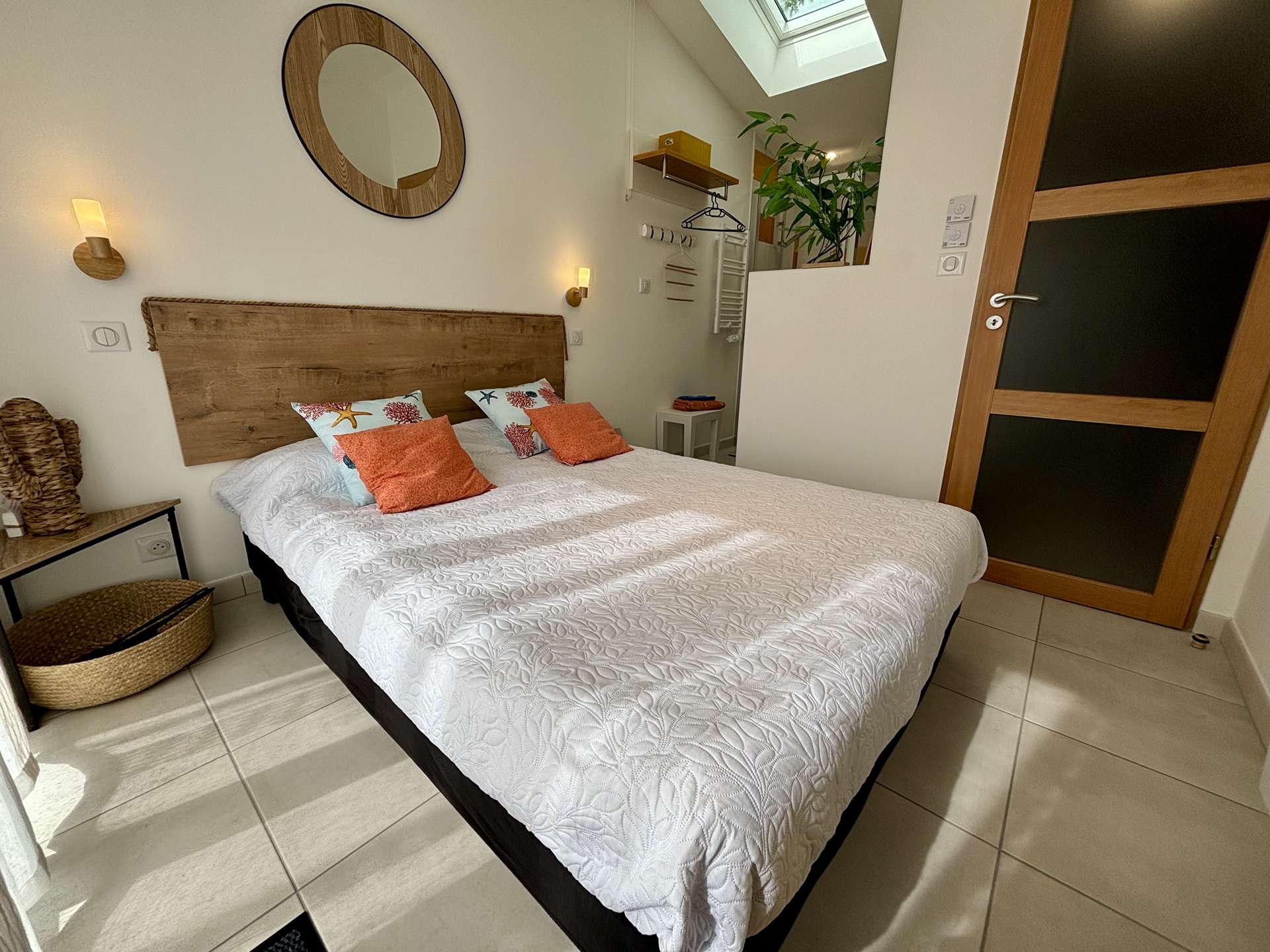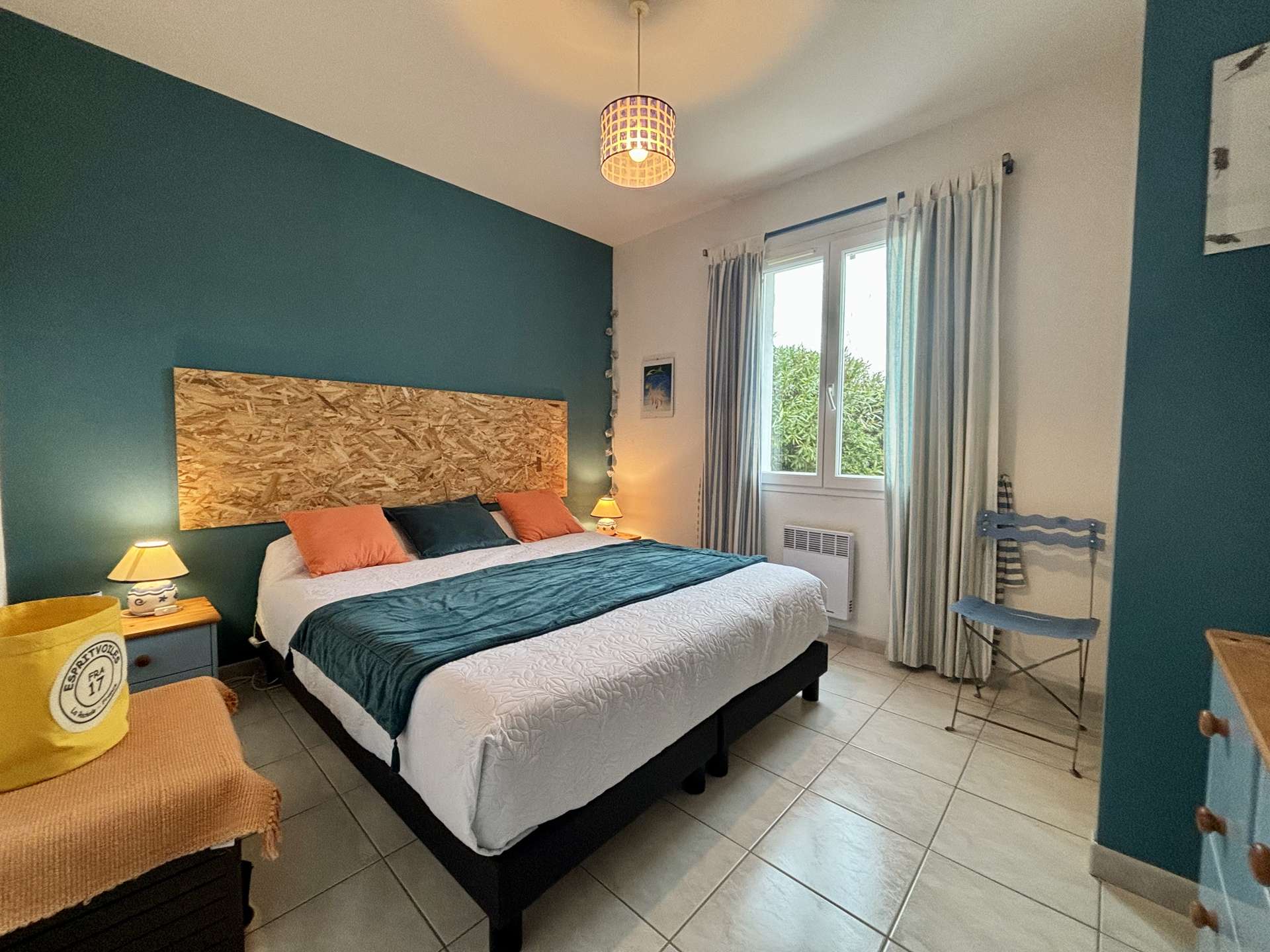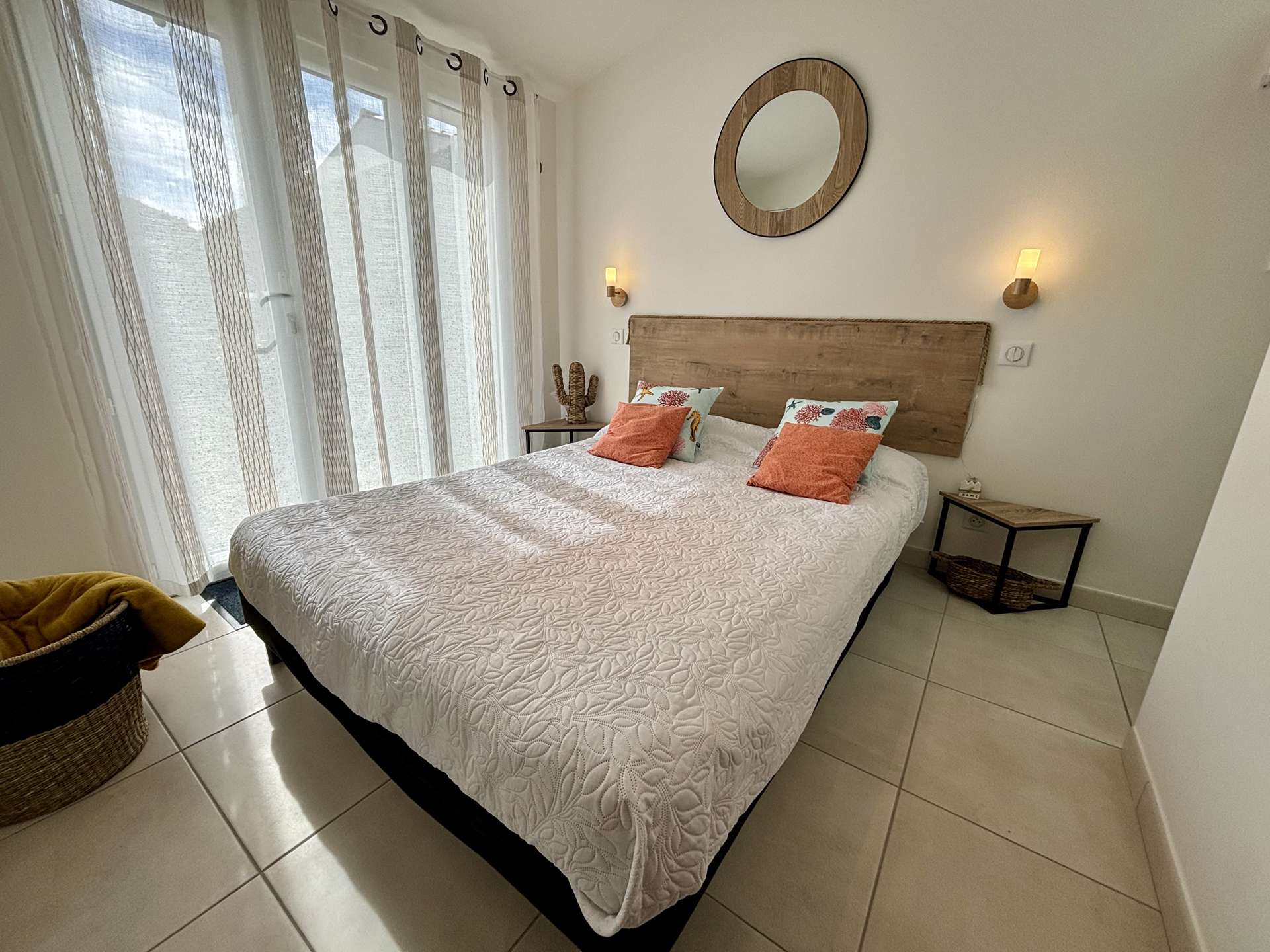 Located 250m from the beach and close to the city center, independent house on one level on an enclosed plot of 290m² not overlooked. It consists of a living room/living room with two sofas, an equipped kitchen (refrigerator freezer, microwave oven, electric oven, electric hob), a bedroom with a 140 bed and adjoining shower room with WC , a second bedroom with a 160 or 2 x 80 bed, a third bedroom with a 90 bed, a shower room and a separate WC with window. Two terraces in front and behind the house with garden furniture and barbecue.