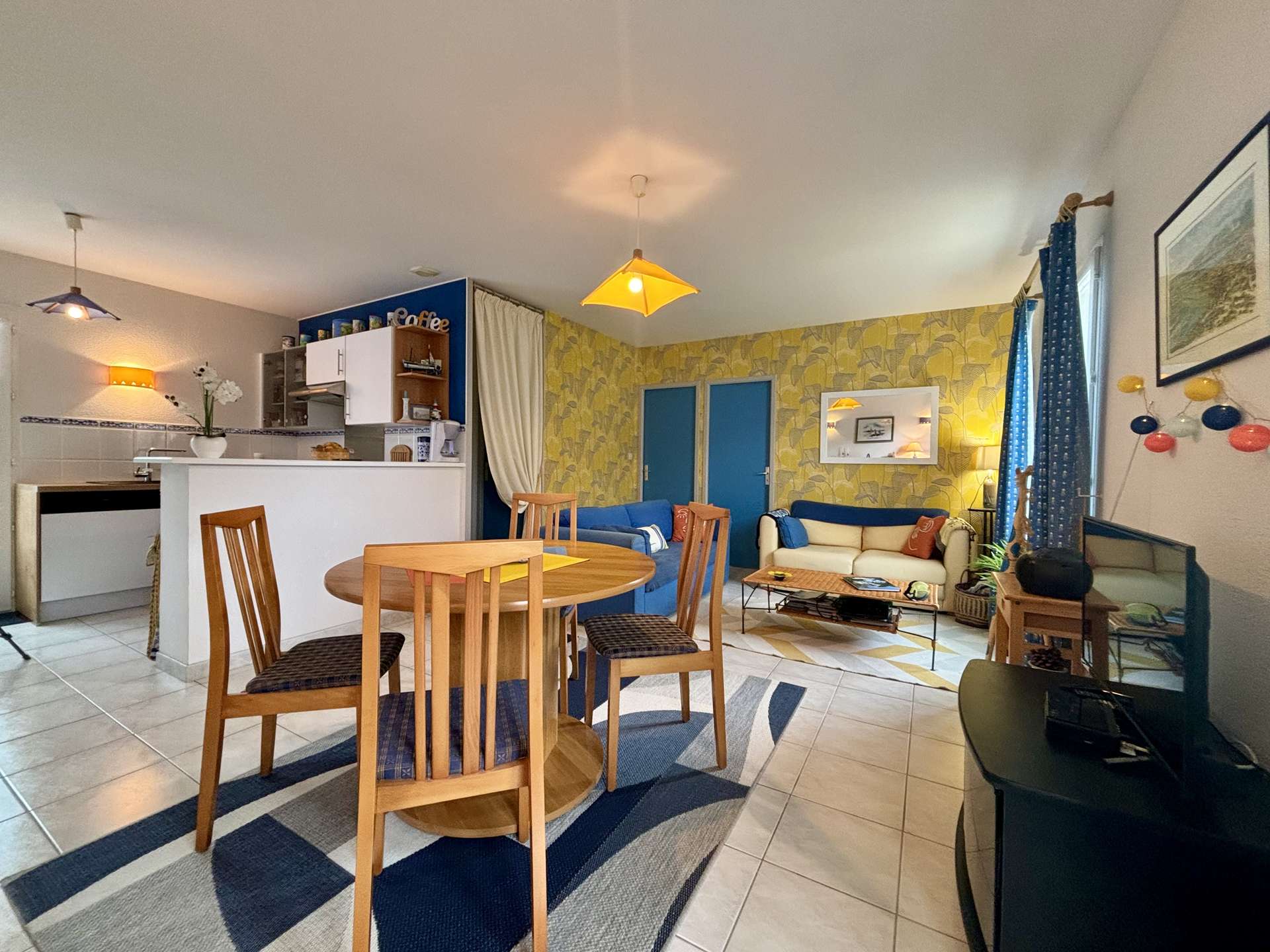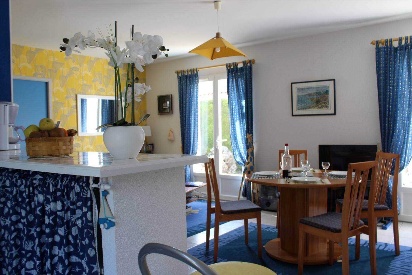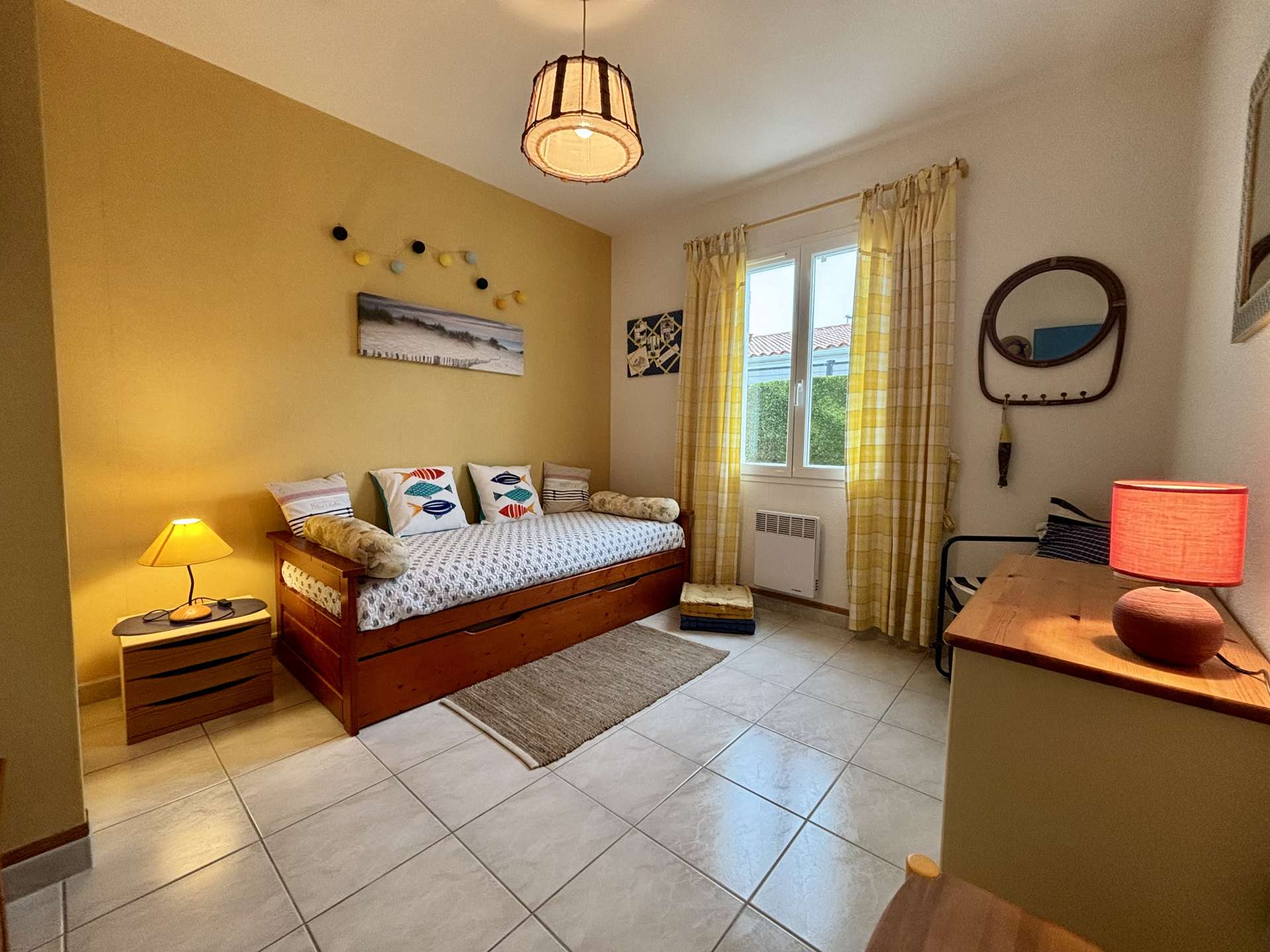 Located 250m from the beach and close to the city center, independent house on one level on an enclosed plot of 290m² not overlooked. It consists of a living room/living room with two sofas, an equipped kitchen (refrigerator freezer, microwave oven, electric oven, electric hob), a bedroom with a 140 bed and adjoining shower room with WC , a second bedroom with a 160 or 2 x 80 bed, a third bedroom with a 90 bed, a shower room and a separate WC with window. Two terraces in front and behind the house with garden furniture and barbecue.