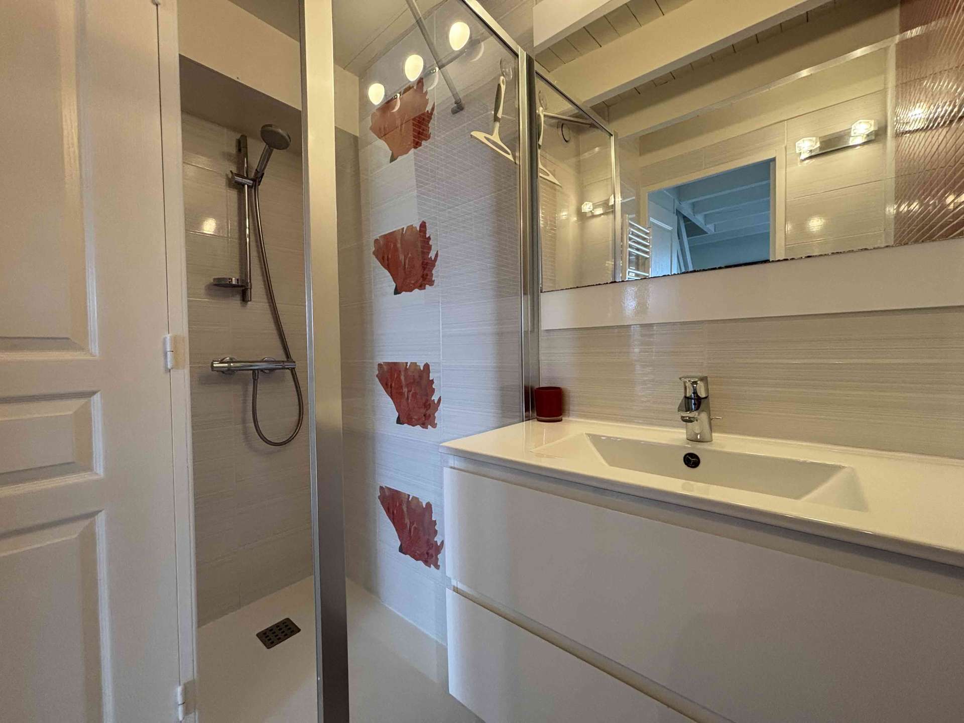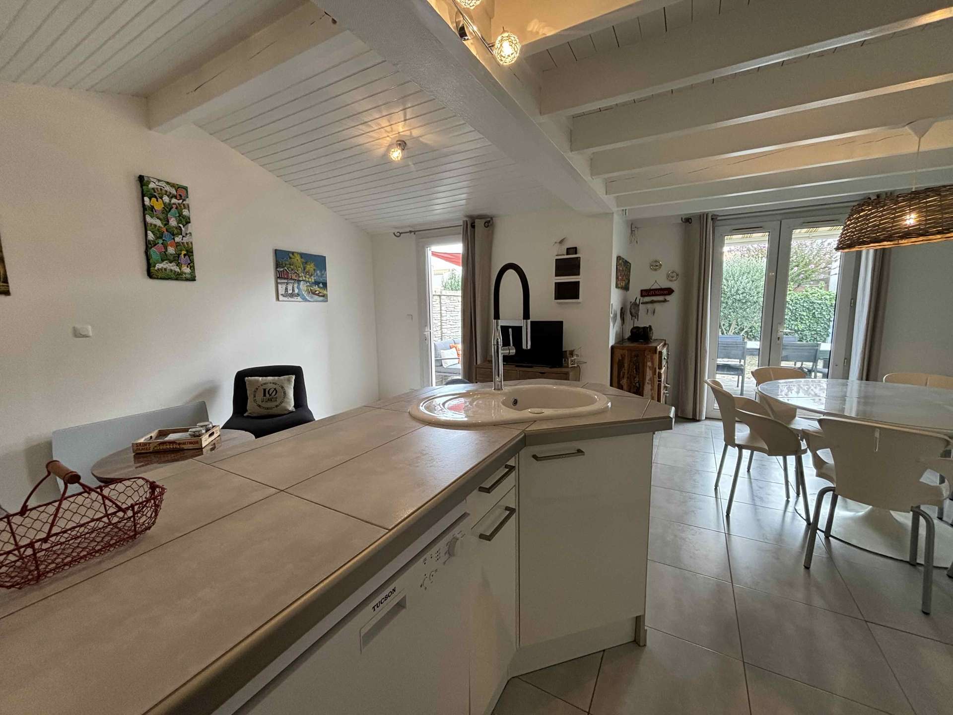 Upstairs, a bedroom with two beds (140) and a second bedroom with two beds (2x90cm). Outside, a pleasant enclosed garden with terrace and garden furniture, gas plancha. Parking in the residence.