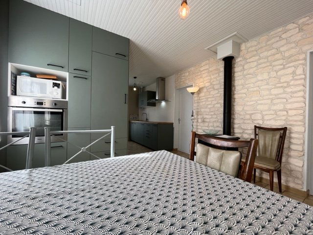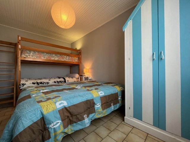 SAINT DENIS D'OLERON - LES HUTTES 3-room house - approximately 50 m² - up to 6 people In the immediate vicinity of the sea (450m) and the supervised beach of Les Huttes (1000m) pleasant house comprising: - Living room / living room with sofa , flat screen TV, dining table, chairs. - Equipped and furnished open kitchen including, fridge with freezer section, electric oven, microwave, coffee maker, kettle, toaster, induction hob, extractor hood. - Bedroom 1 with 1x140cm bed, large built-in cupboard, chest of drawers, bedside lamps. - Bedroom 2 with 1x140cm bed + 2x90cm bunk beds, wardrobe, chest of drawers. - A bathroom with cabin shower, a basin with storage. - Separate WC with window. - An outdoor laundry room including a fridge with freezer section, a washing machine, drying rack, sink. Enclosed garden with possibility of parking, brick barbecue, garden furniture with 6 chairs, sunbeds.