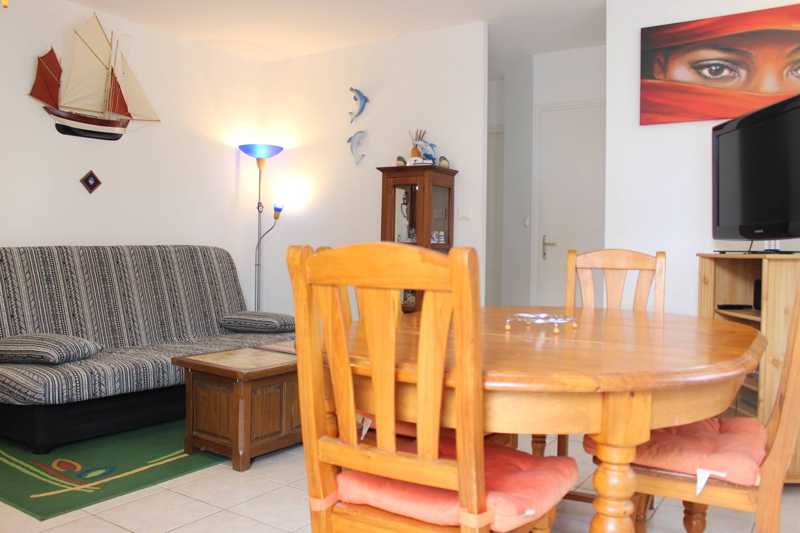 Saint Pierre d'Oleron (17) - Boyardville 4-room house - approximately 55 m² - up to 6 people A stone's throw from the town centre, house consisting of a living room/kitchen area, a bedroom with a double bed beds (140), a cabin with a bunk bed (2x90), a second cabin with possible access from the outside with a double bed (140), an adjoining bathroom with WC, a bathroom bathroom and a separate toilet. Cellar with washing machine. Outside, an enclosed area with garden furniture and a built-in barbecue. Pets not allowed. The Plus of this rental by the sea: close to the city center, land, cycle paths nearby. Cleaning included.