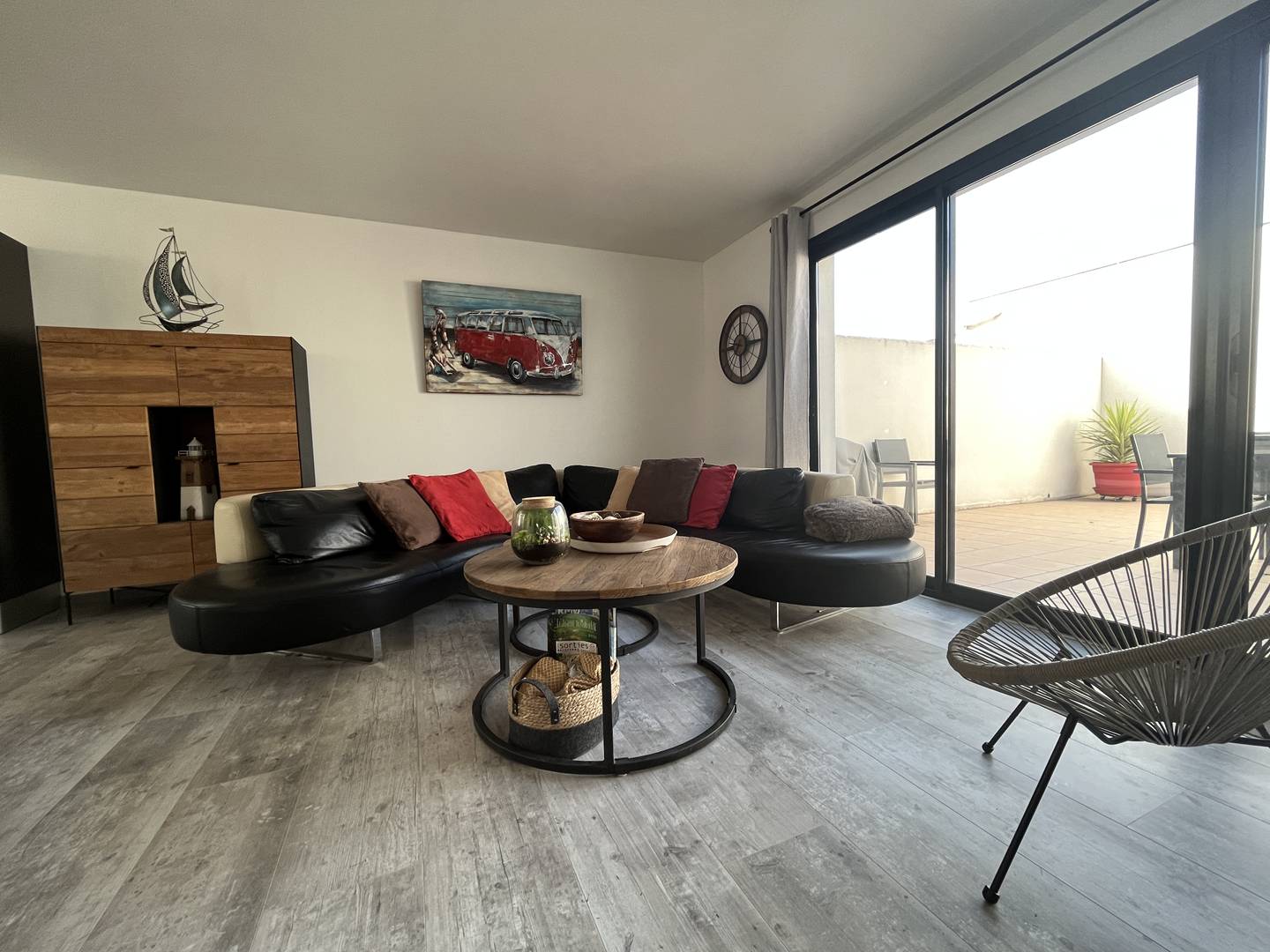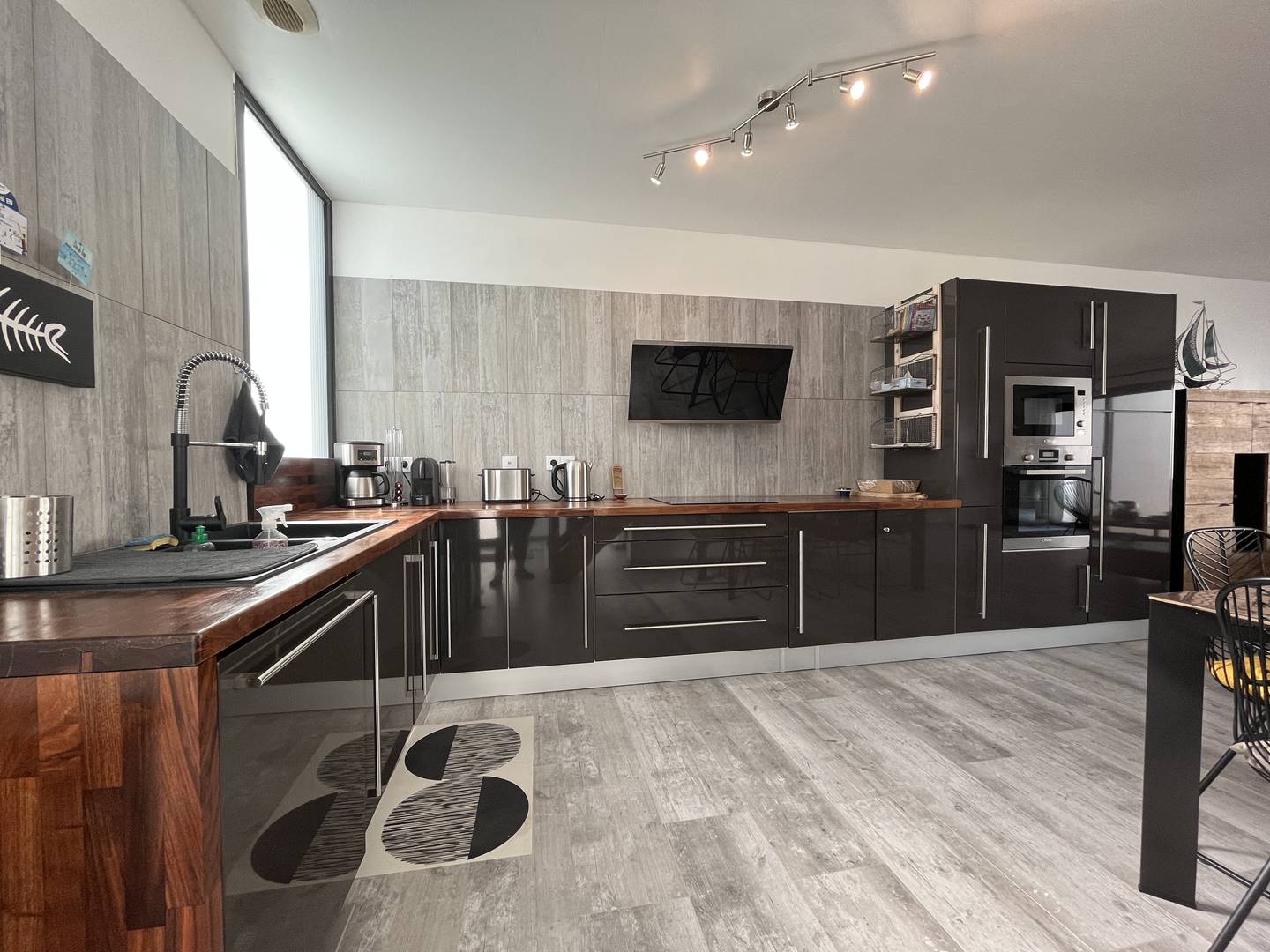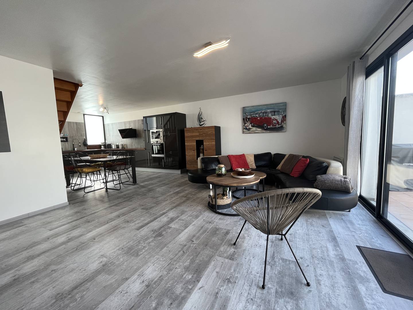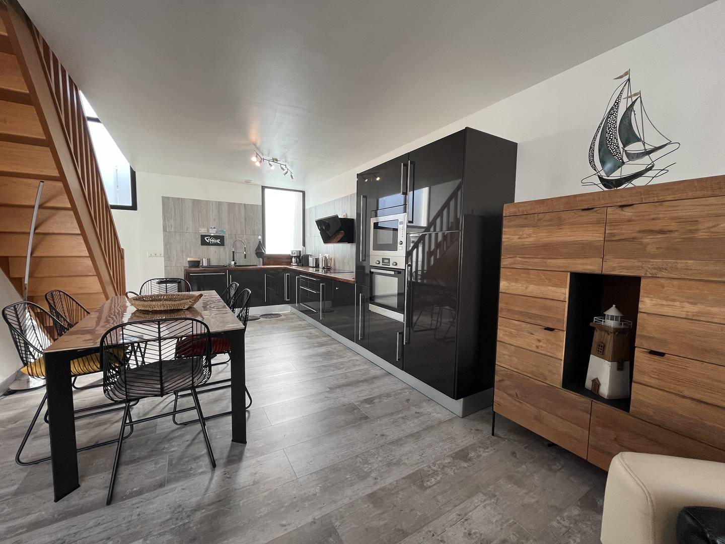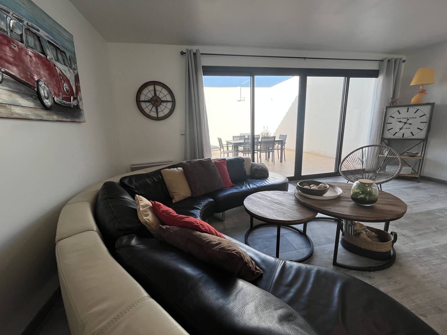 Saint Pierre d'Oléron - Center House T4 - approximately 95m² - up to 6 people Spacious and bright house in the heart of St Pierre consisting of an entrance with wc, a large living room with sofa, television; an equipped kitchen open to living room with induction hob, oven, microwave, refrigerator, coffee maker, kettle, toaster, extractor; a garage used as a cellar with washing machine and freezer. Upstairs: a bedroom with a 140 bed and closet/wardrobe, a second bedroom for two beds (140 bed) with closet/wardrobe, a third bedroom for two beds (140 bed); a bathroom with heated towel rail, a separate toilet. Outside, a walled terrace, barbecue, garden furniture, sunbeds and awning. The advantage of this rental by the sea: Spacious property with great amenities, tastefully renovated house, in the city center and close to the shops. Cleaning with disinfection included.