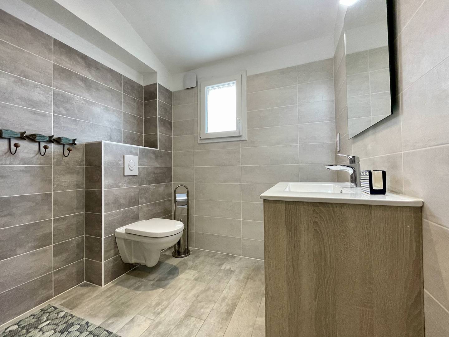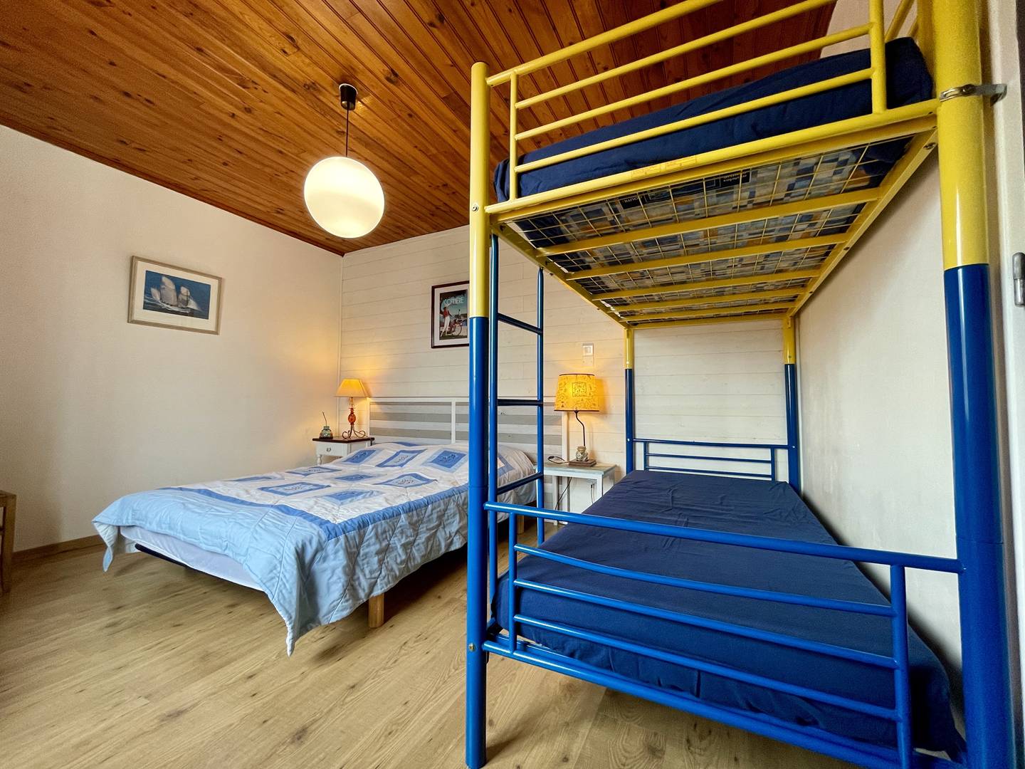 SAINT PIERRE D'OLERON - LA COTINIERE 4-room house - approximately 100 m² - up to 6 people Superb house close to the Port of La Cotinière consisting of a living room with lounge area, a fully equipped kitchen and furnished, a bathroom with shower. A bedroom with two beds (160), a second bathroom with shower and WC. Upstairs, a separate toilet, a second bedroom with two beds (140), a third bedroom with two beds (140 + bunk beds 90). Outside, private courtyard with tiled terrace and garden furniture. Parking on the ground. The advantage of this rental by the sea: Proximity to the Port de la Cotinière and its shops, proximity to the beach and cycle path, parking on the ground. Cleaning included.