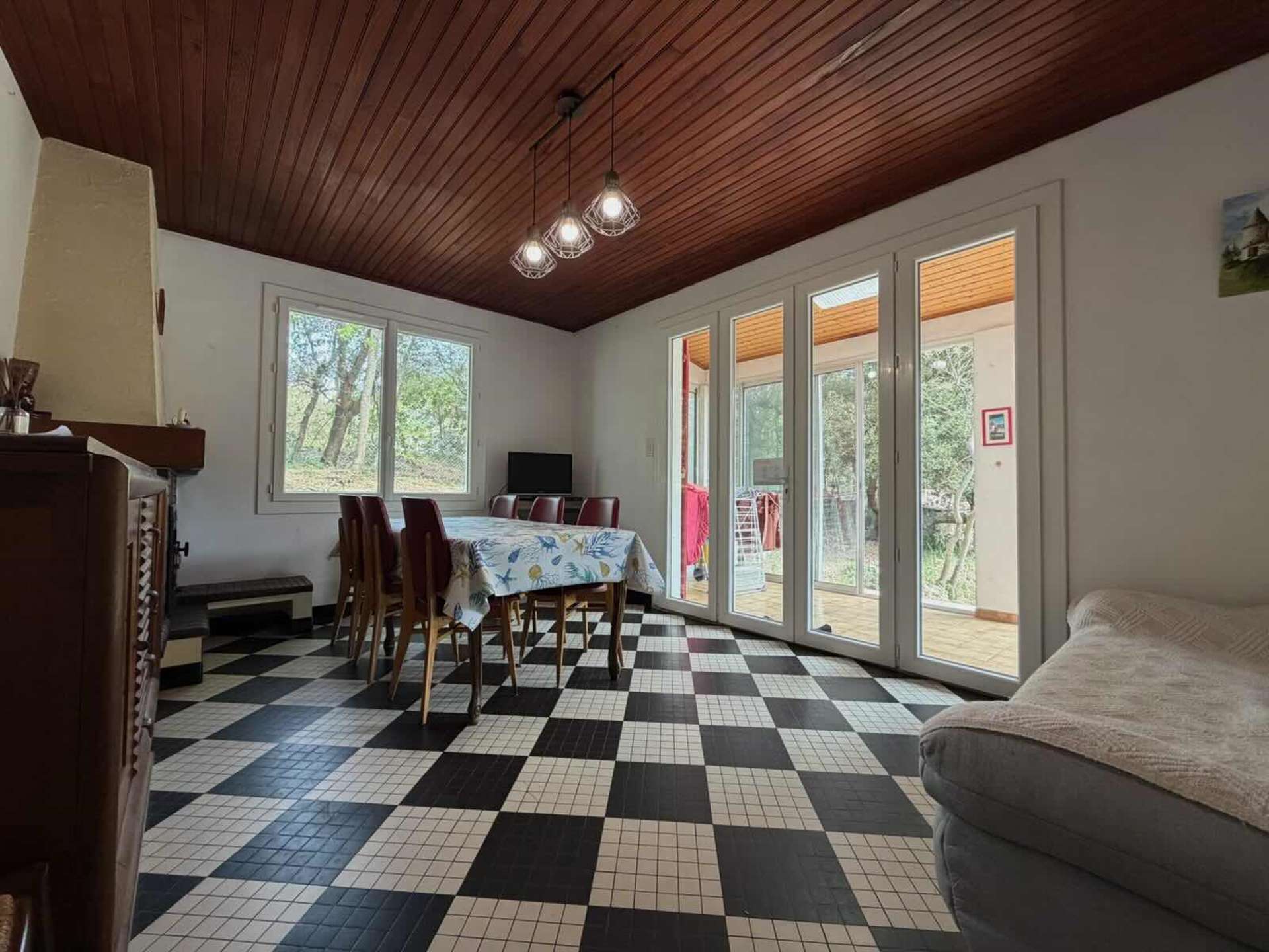 Saint Pierre d'Oléron (17) - La Biroire 2-room house - approx. 41 m² - up to 4 people In a quiet area, house located on 1600m² of enclosed, tree-lined land. The accommodation consists of a dining room with fireplace and sofa bed (sofa bed), a bedroom with a double bed (140) and a wardrobe, a fitted kitchen and a bathroom. with shower cubicle. Independent WC. Outside, a large veranda and a vast garden between lawn on one side and sand on the other. The advantages of this rental by the sea: 300 meters from the beach, quiet area. Veranda, a large shaded ground, possibility of parking on the property. Cleaning with disinfection included.