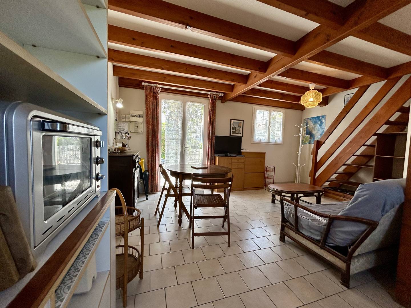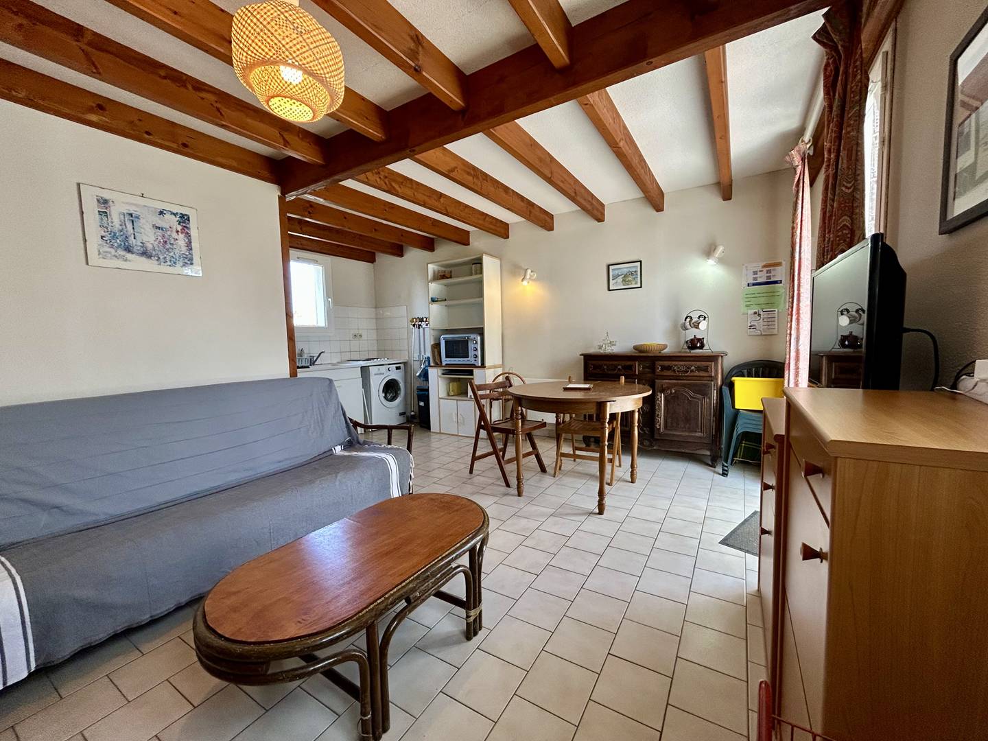 Saint Pierre d'Oléron (17) - La Cotinière 3-room house - approximately 50m² - up to 4 people Semi-detached residential house with enclosed garden consisting on the ground floor of a living room/living room, a kitchen area, a bathroom with a separate WC. Upstairs, a bedroom with a double bed (140), a second bedroom with two single beds (70). Outside, a terrace with garden furniture and barbecue. Parking on the grounds of the house. The plus of this rental by the sea: Typical sector of the fishing port close to the city center. Bike paths nearby. Cleaning with disinfection included.
